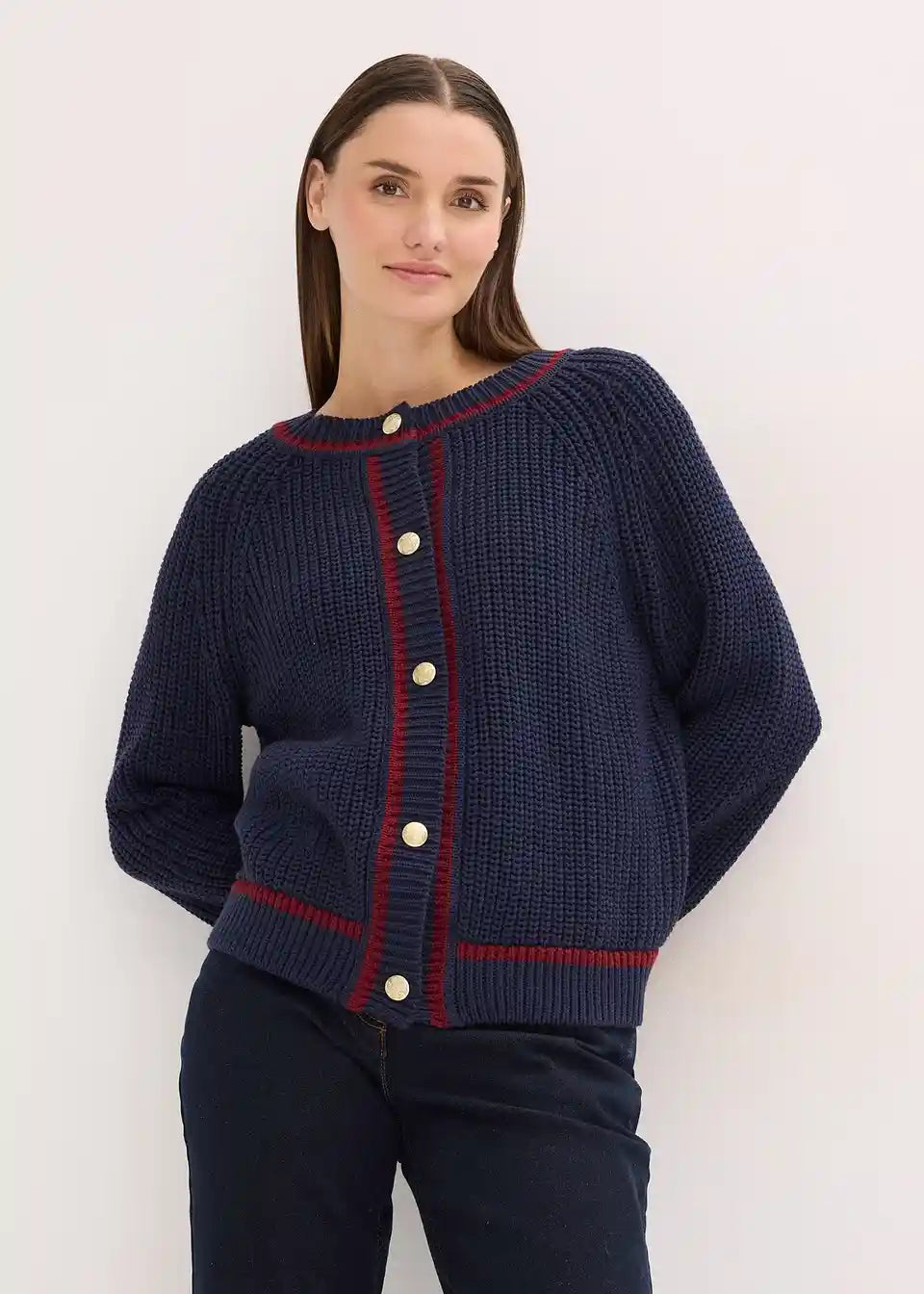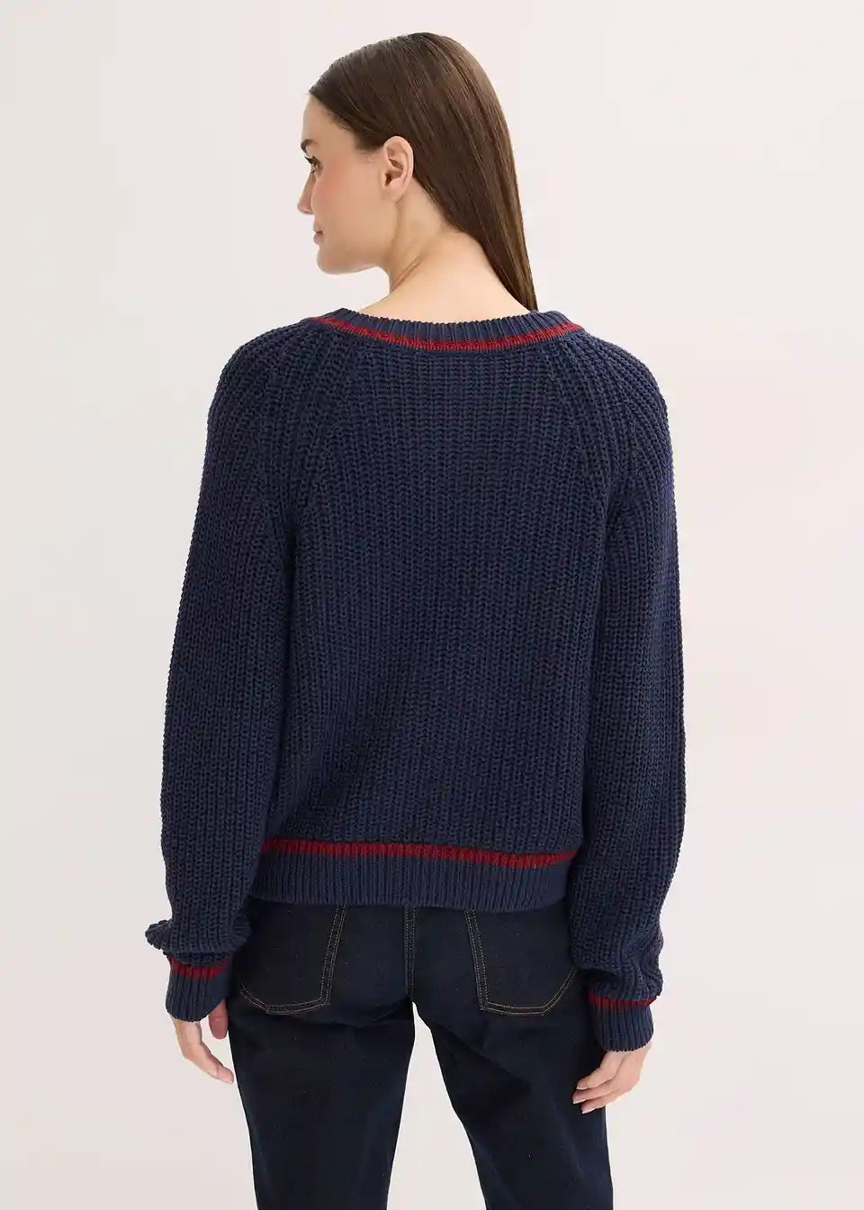 Strickjacke mit kontrastfarbigen Streifen