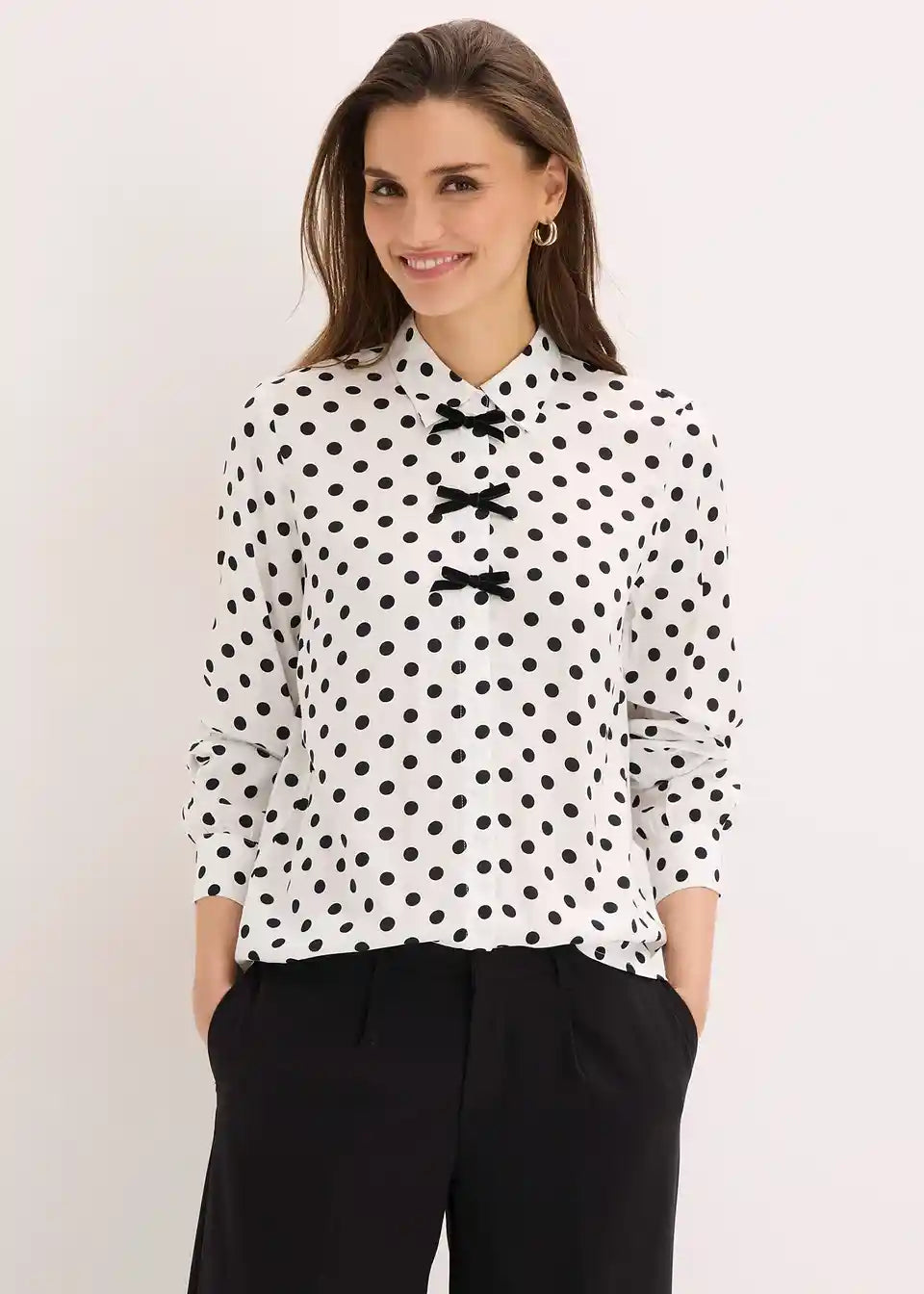 bedruckte Bluse aus fließender Viskose mit dekorativen Schleifen vorne