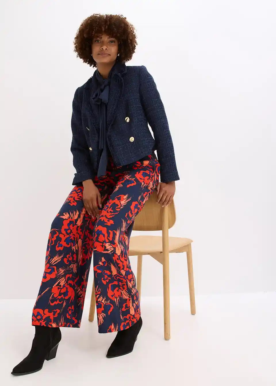 weit geschnittene Palazzo-Hose aus leichtem Viskose-Crêpe mit floralem Print und Gummibund hinten