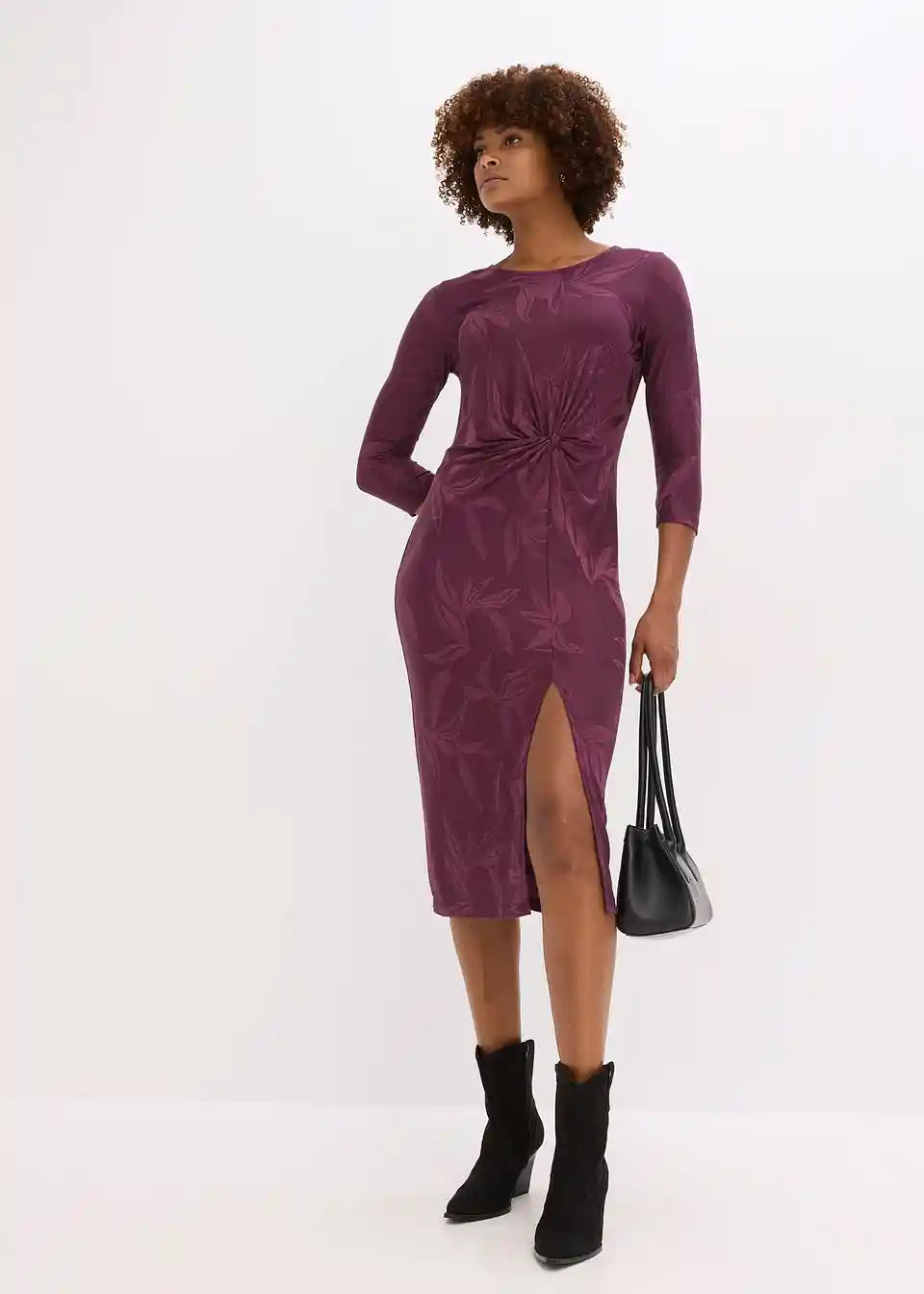 femines Jerseykleid in Midilänge aus modischem Jacquard-Jersey
