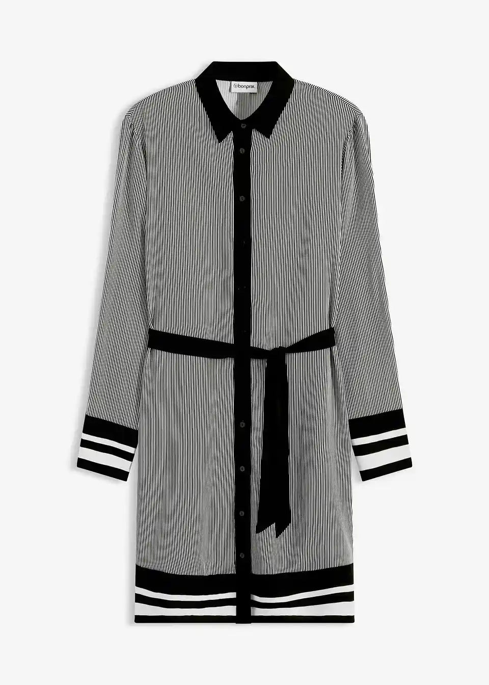 Kurzes, durchgeknöpftes Blusenkleid mit leicht überschnittenen Schultern und langen Ärmeln mit Schlitz und Knopf an den Manschetten. Ungefüttert.