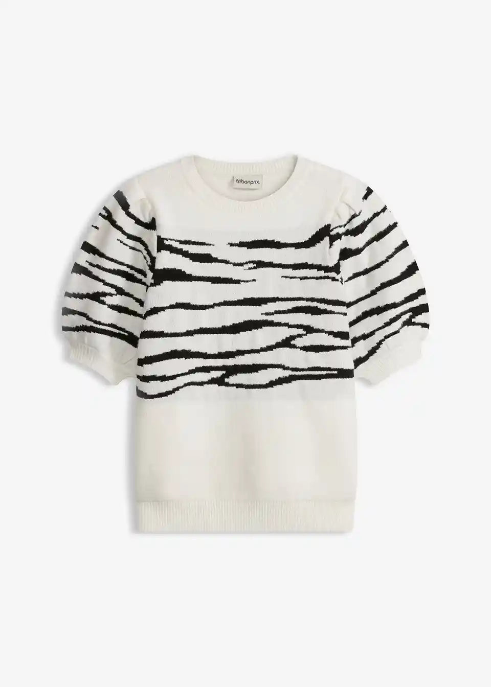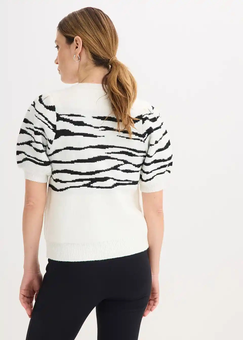 modischer Pullover mit Puffärmeln und Animal-Jacquardmuster
