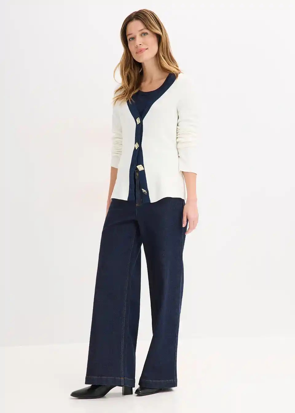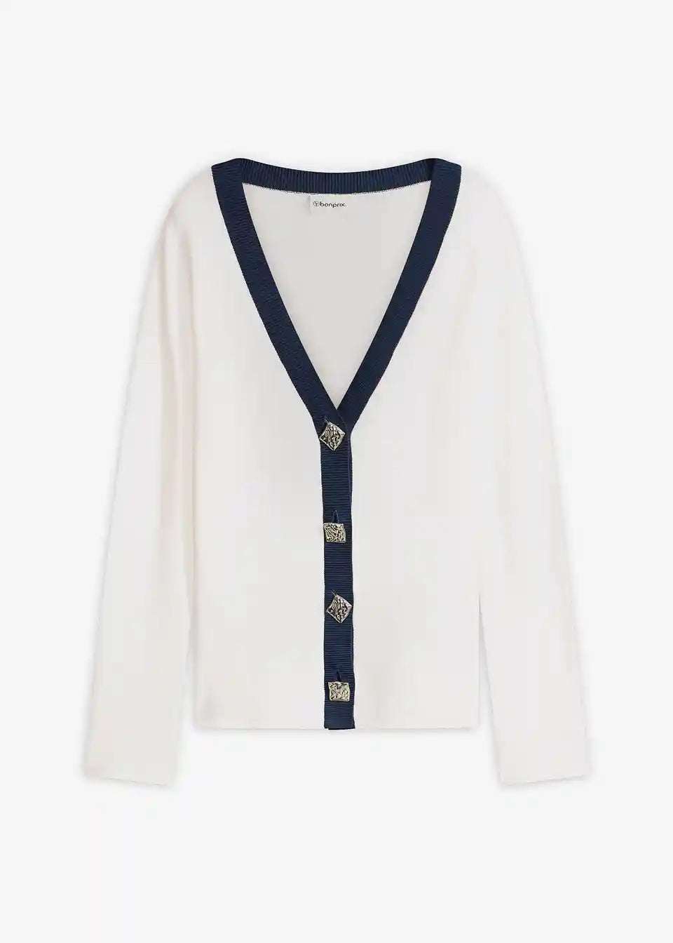 modische Strickjacke mit dekorativen Knöpfen und V-Ausschnitt vorne
