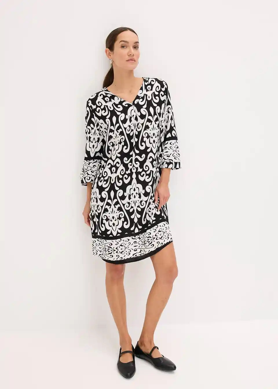 bedrucktes Tunika-Kleid aus fließender Viskose