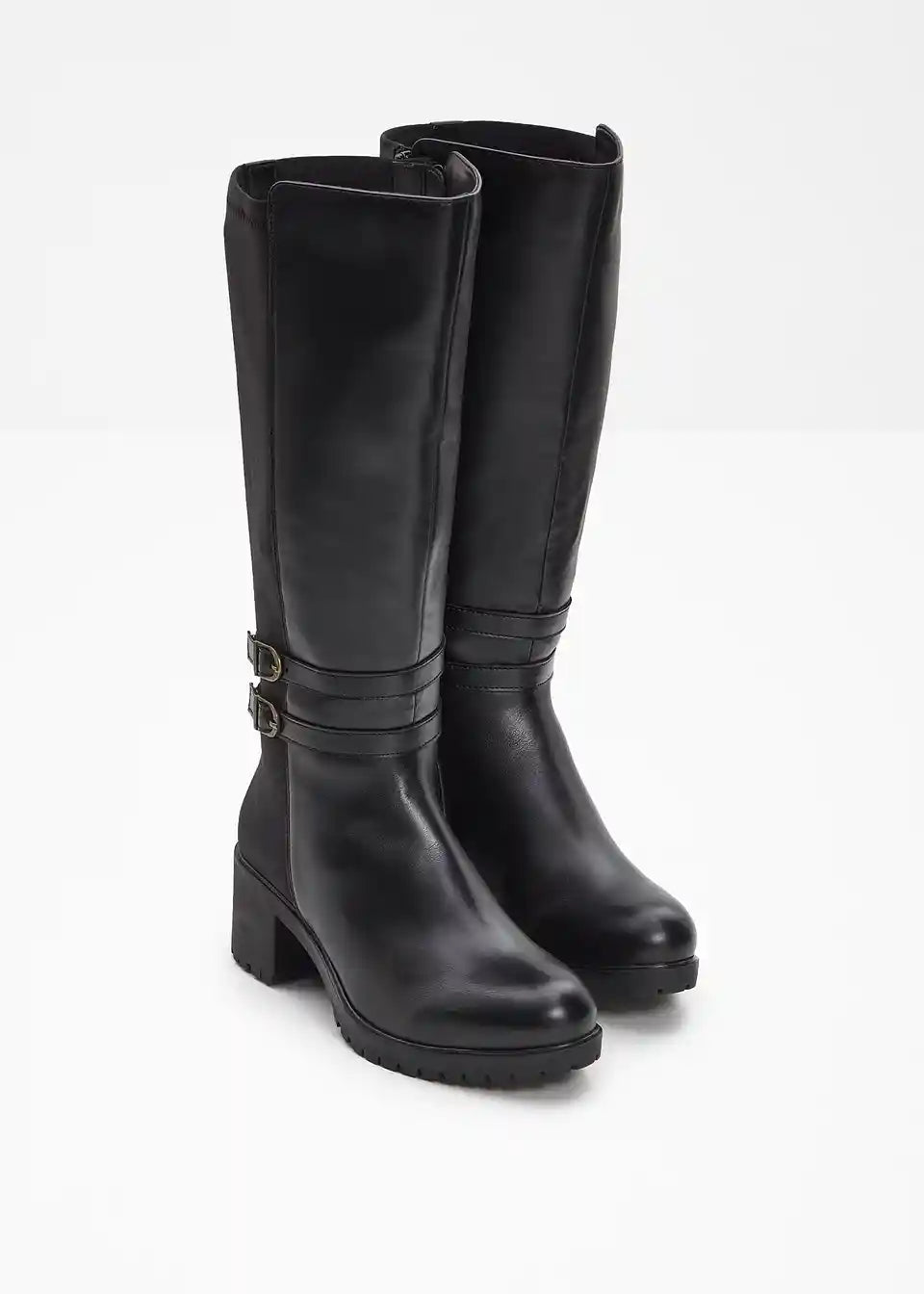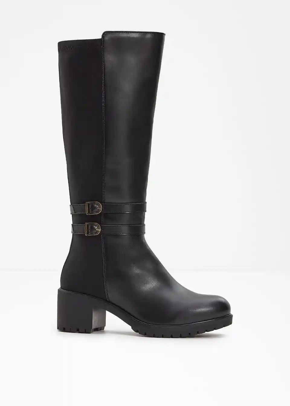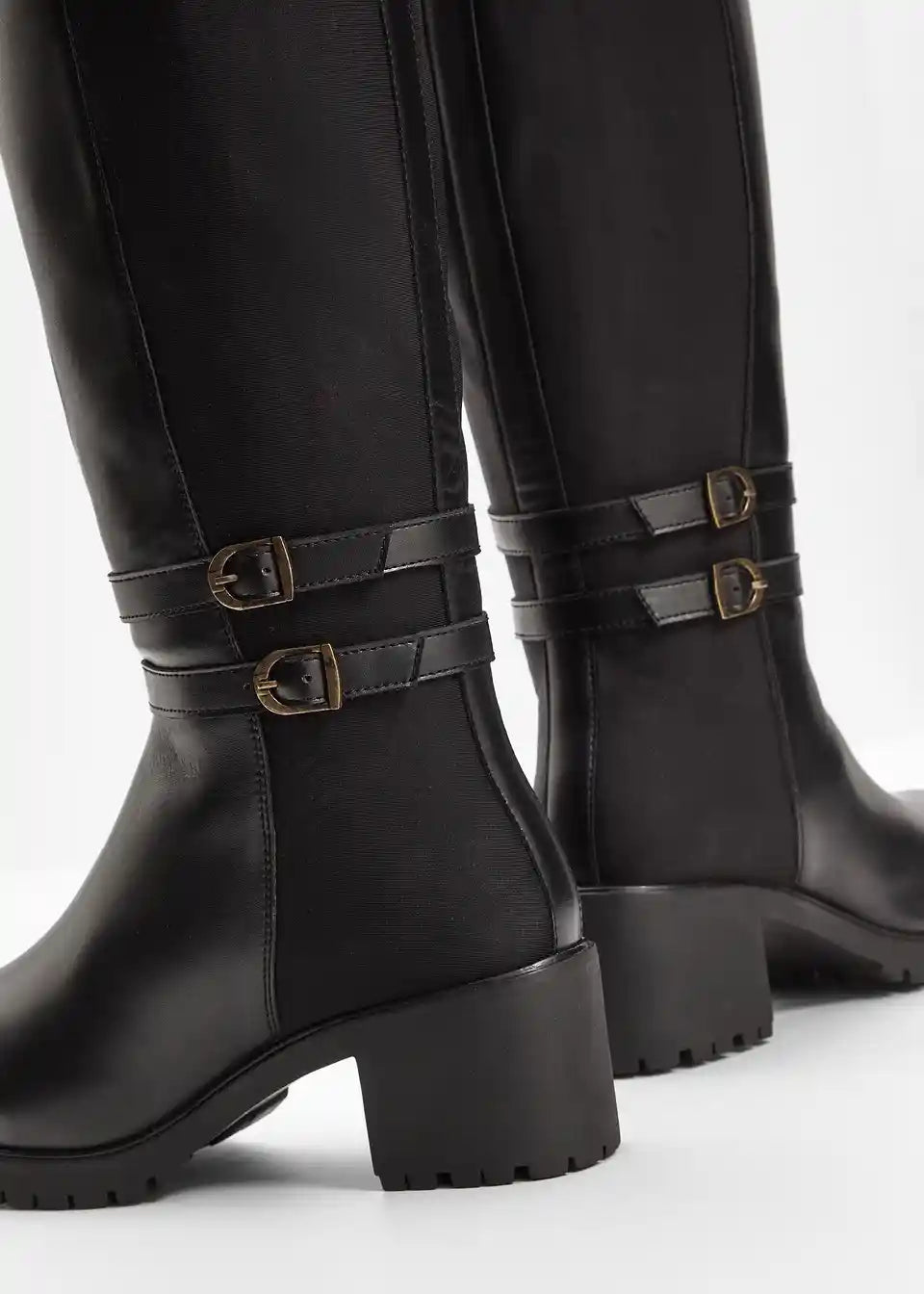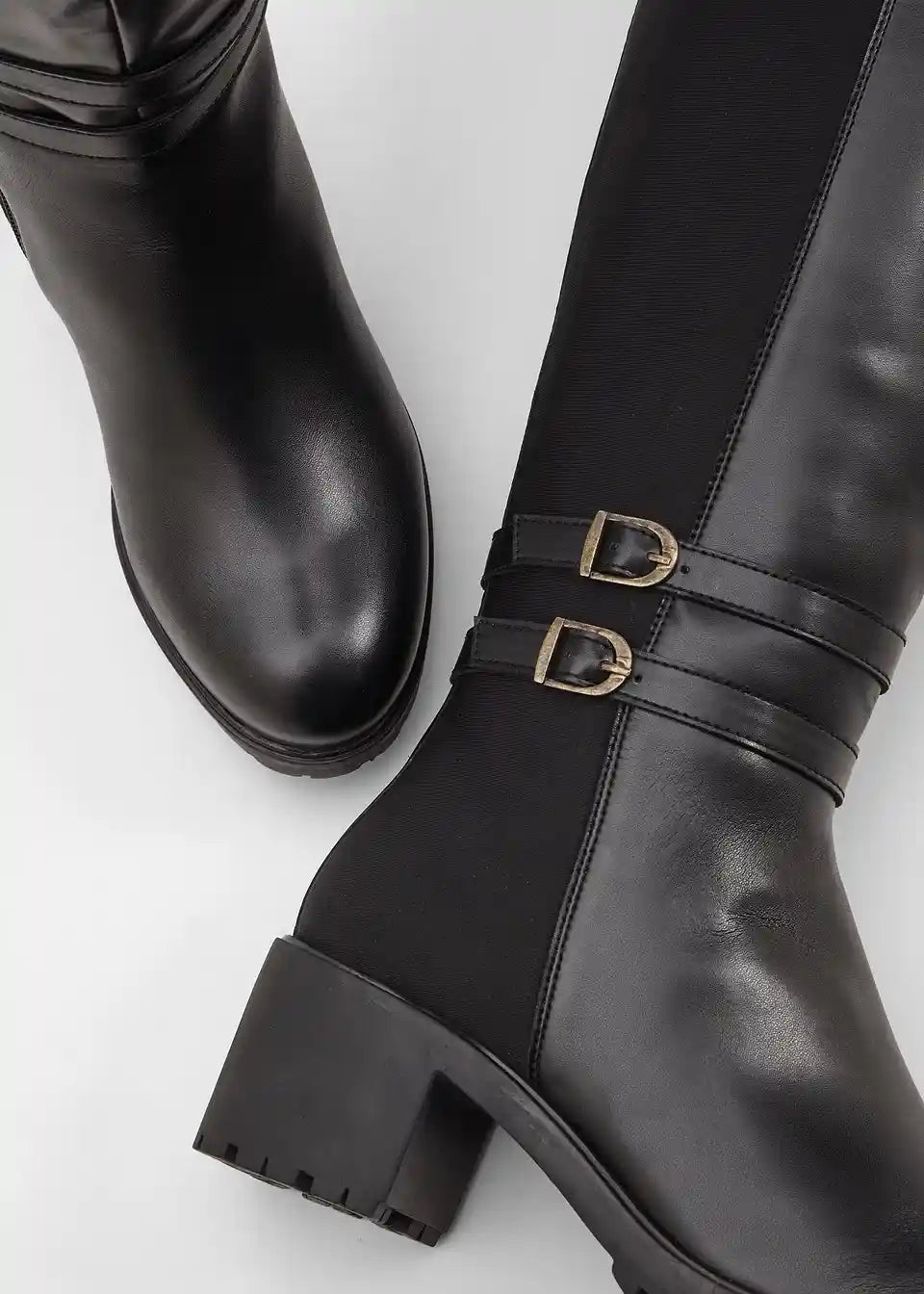 Bequemer Absatz-Stiefel mit dekorativen Schnallen