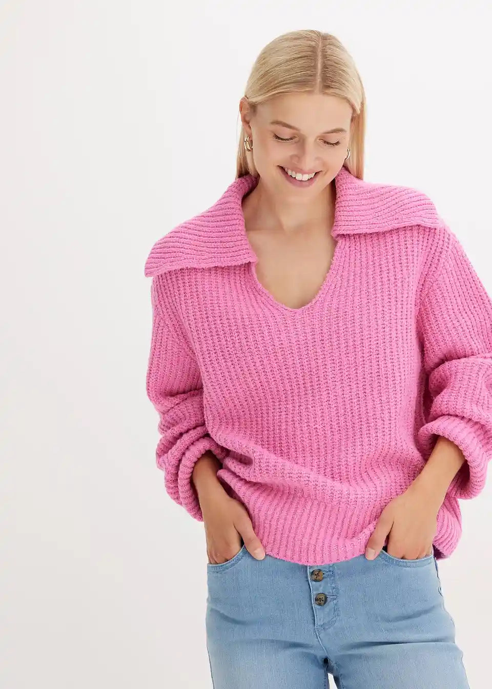 Kuscheliger Pullover in Ripp-Struktur mit auffälligem Kragen