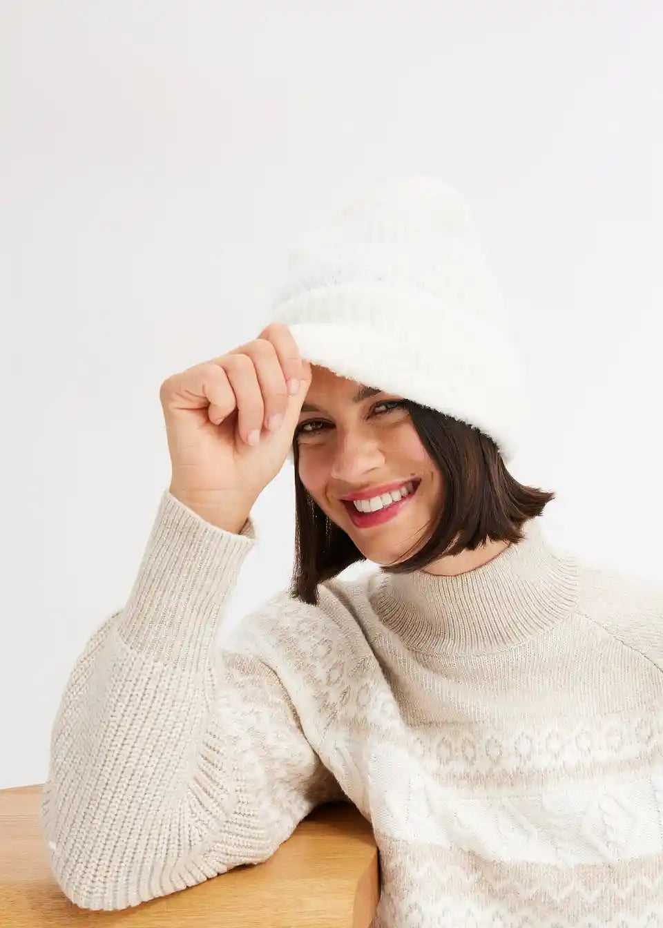 Ein wirklich sehr schöner Pullover und kuschelig weich vom Material, aber leider hat er in meinem Fall meinen Bauch, von der Seite gesehen, zusehr bbetont. Daher leider retour.