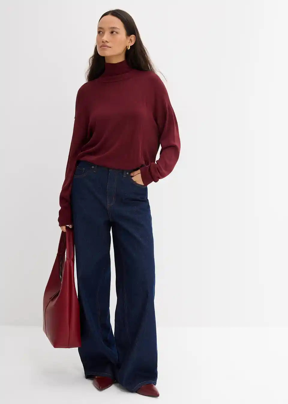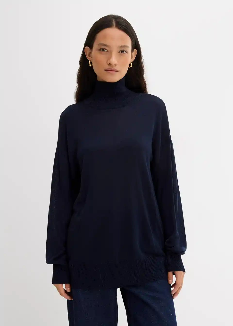 Bequem geschnittener Feinstrickpullover mit Rollkragen