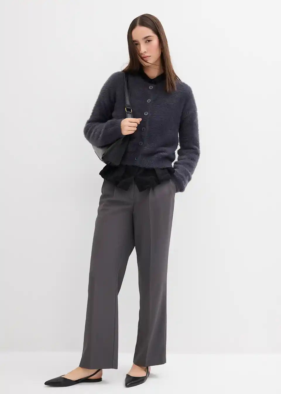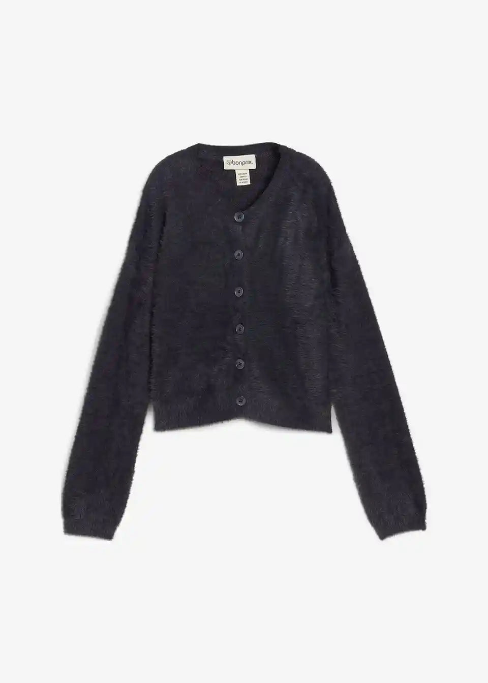Federgarn-Strickjacke mit langem Arm und Knopfleiste vorne