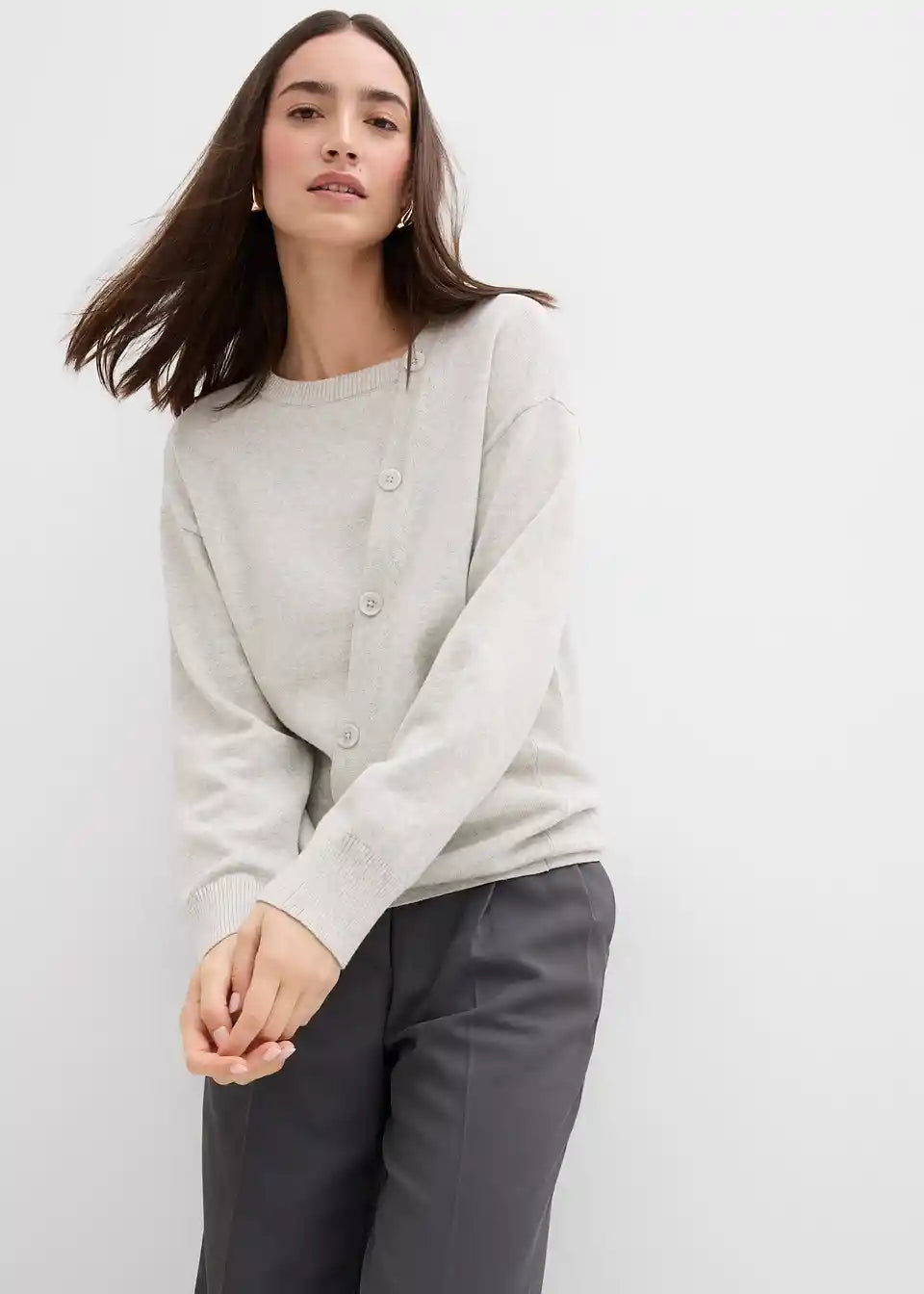 Feinstrickpullover mit asymmetrischer Knopfleiste