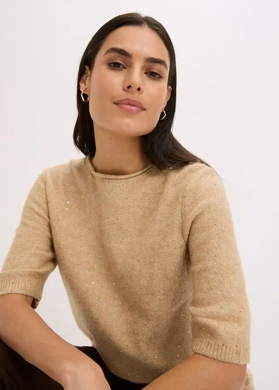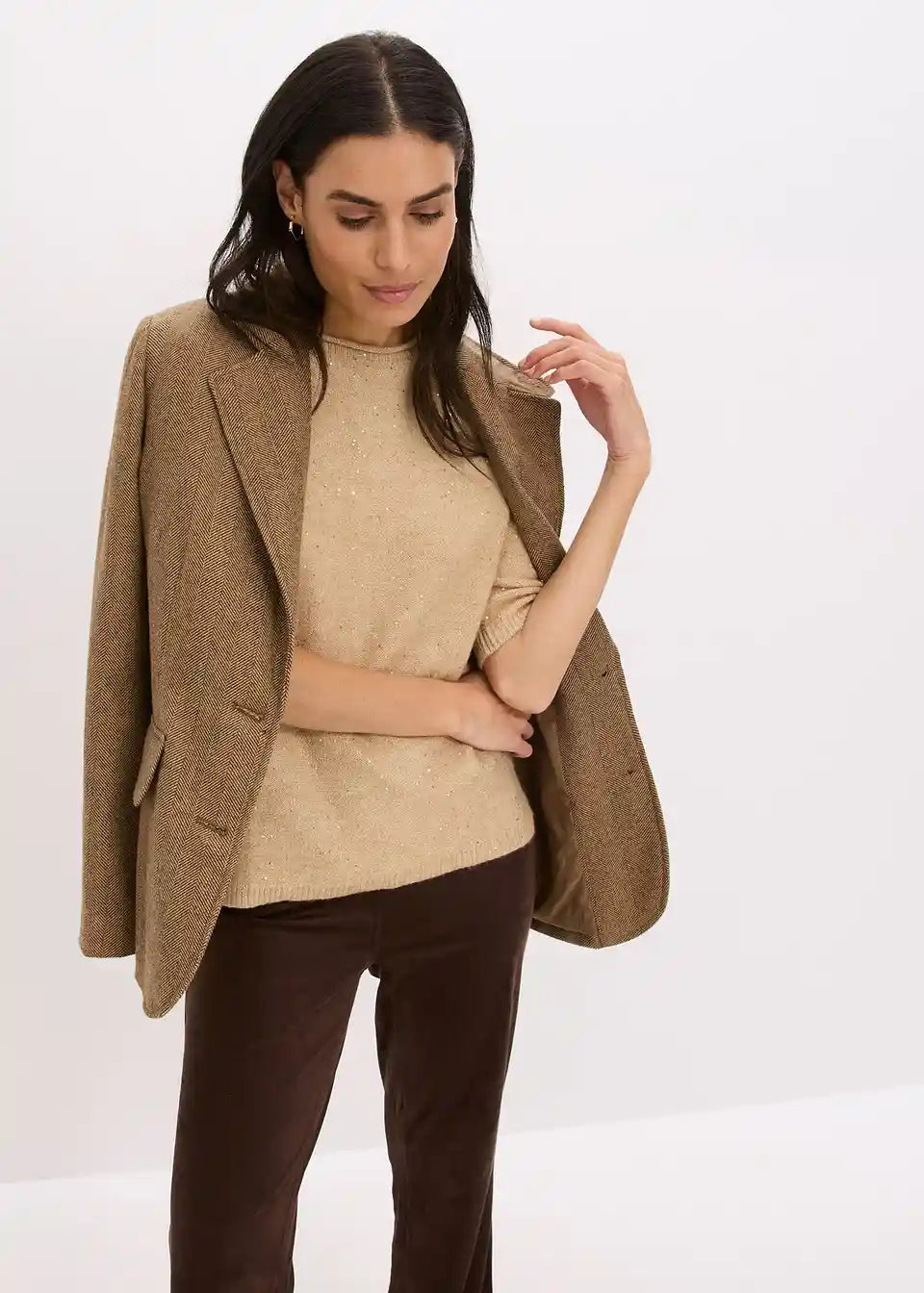 Material:Obermaterial: 37% Polyester (recycelt), 29% Polyacryl, 29% metallisierte Fasern, 3% Wolle, 2% Elasthan