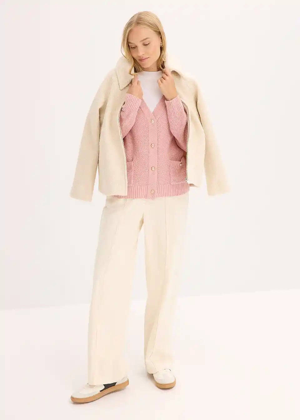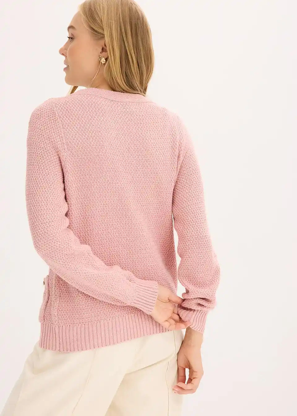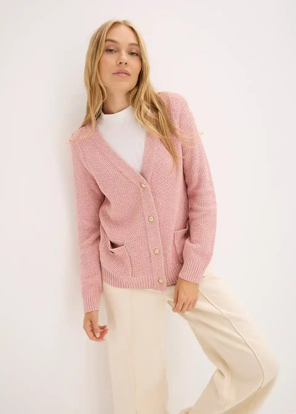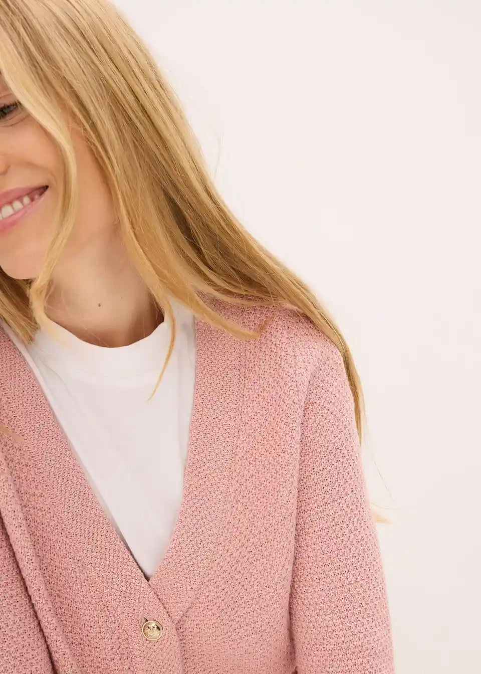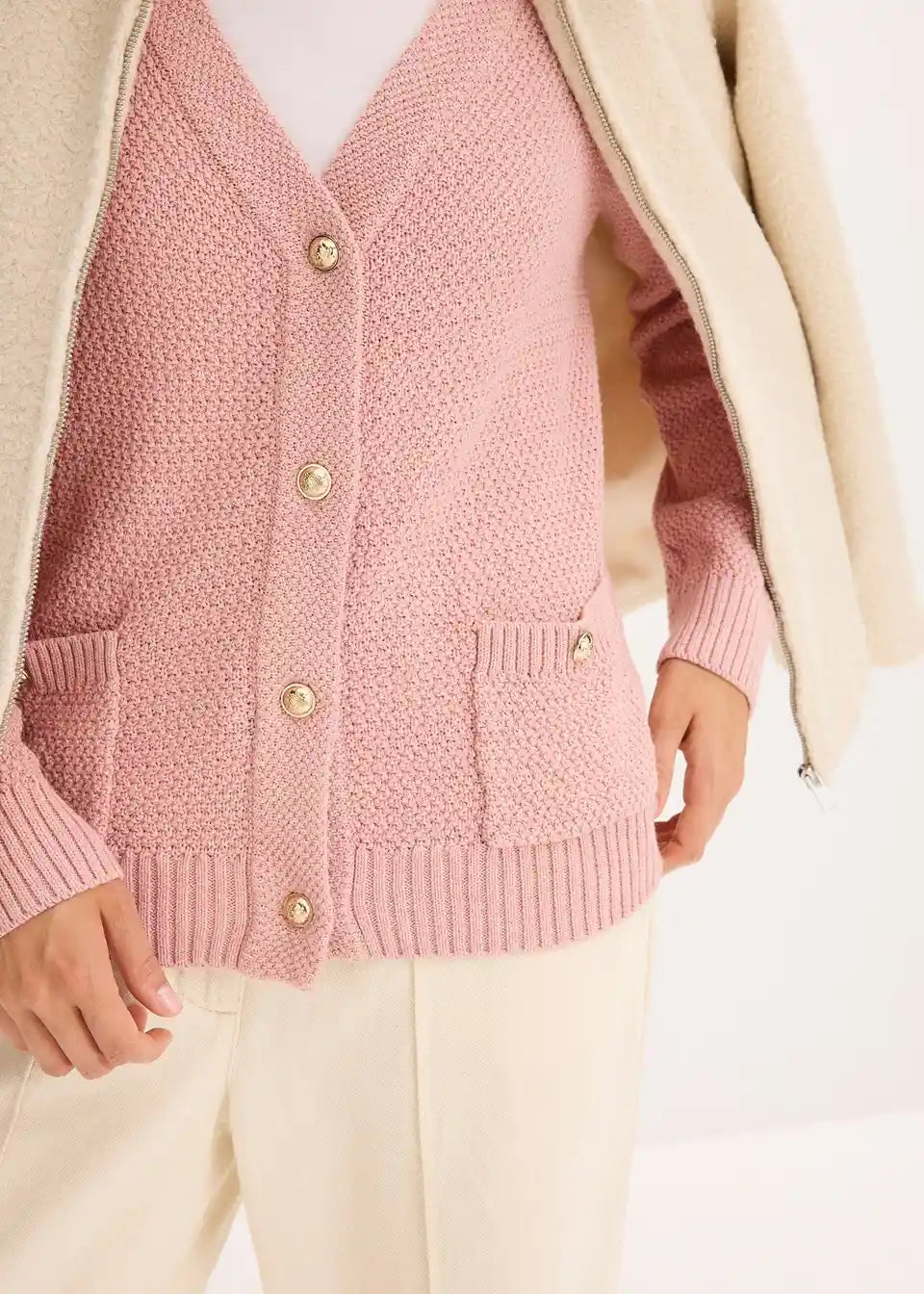 feminine Strickjacke mit goldfarbigen Knöpfen