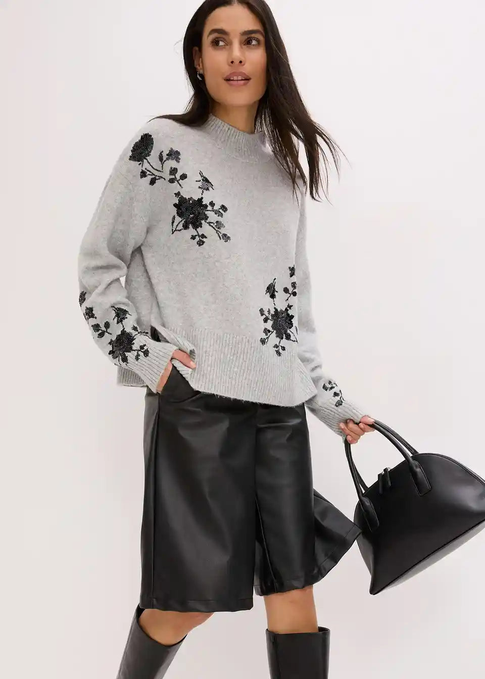 eleganter Pullover mit auffälliger Pailettenstickerei