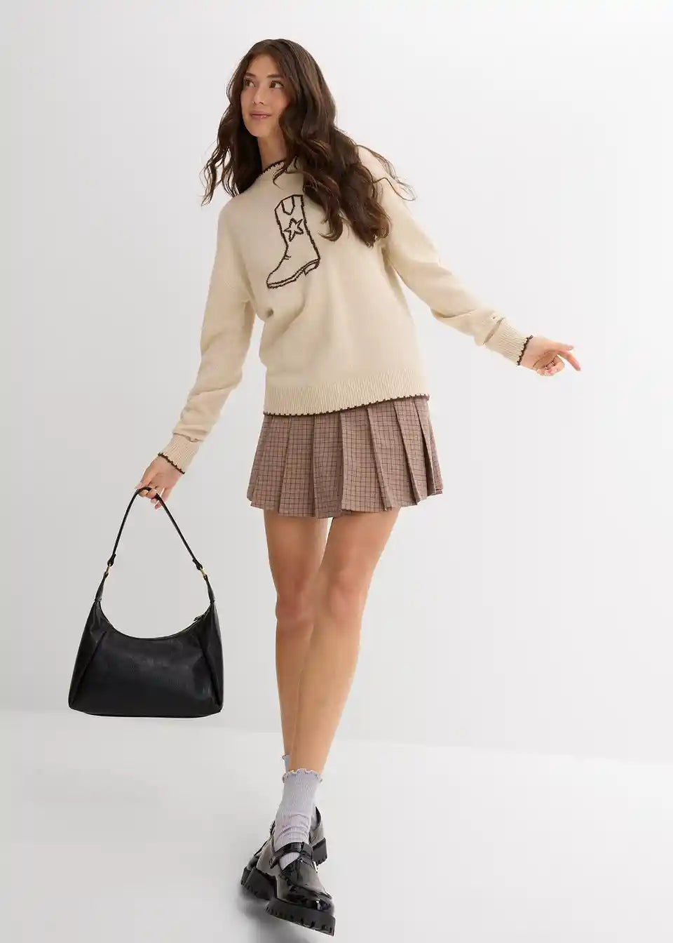 Lässiger Feinstrickpullover mit überschnittener Schulter und stylischem Motiv