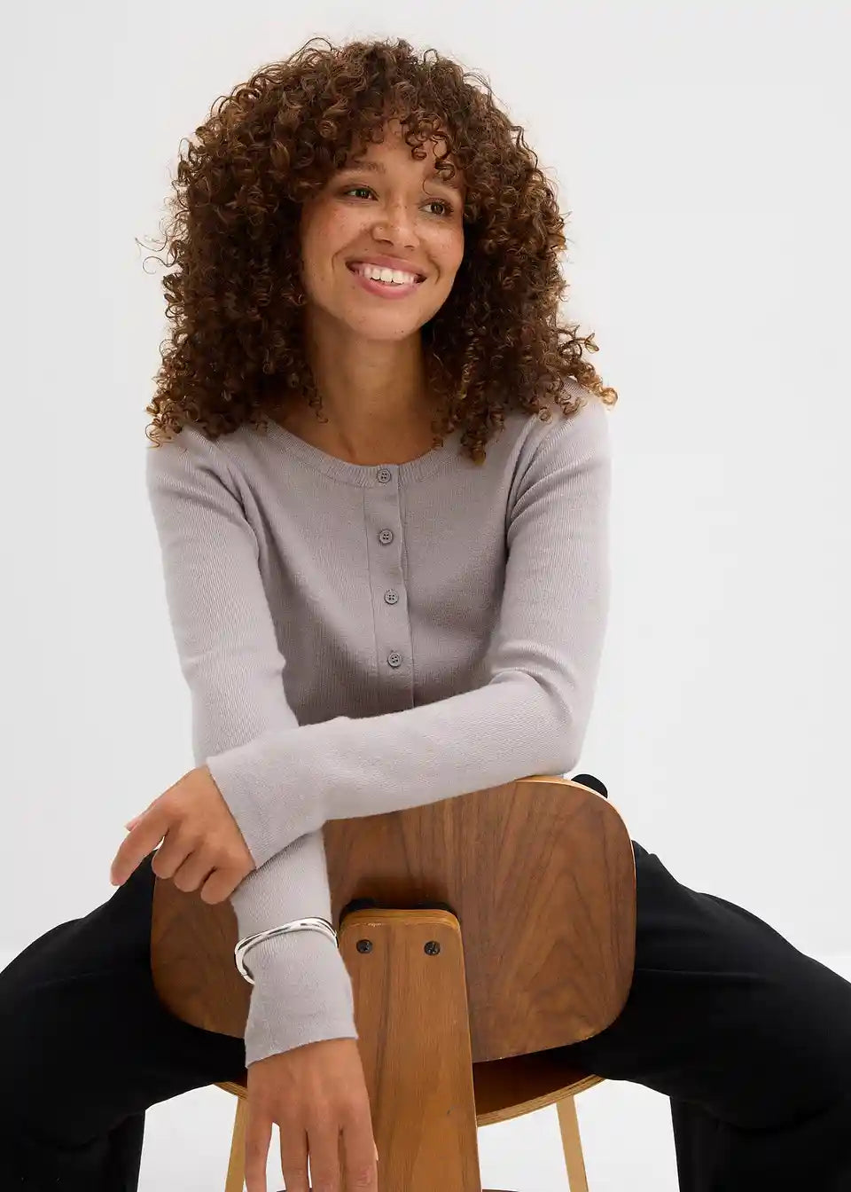 Kurz geschnittene Feinstrickjacke mit Knopfleiste