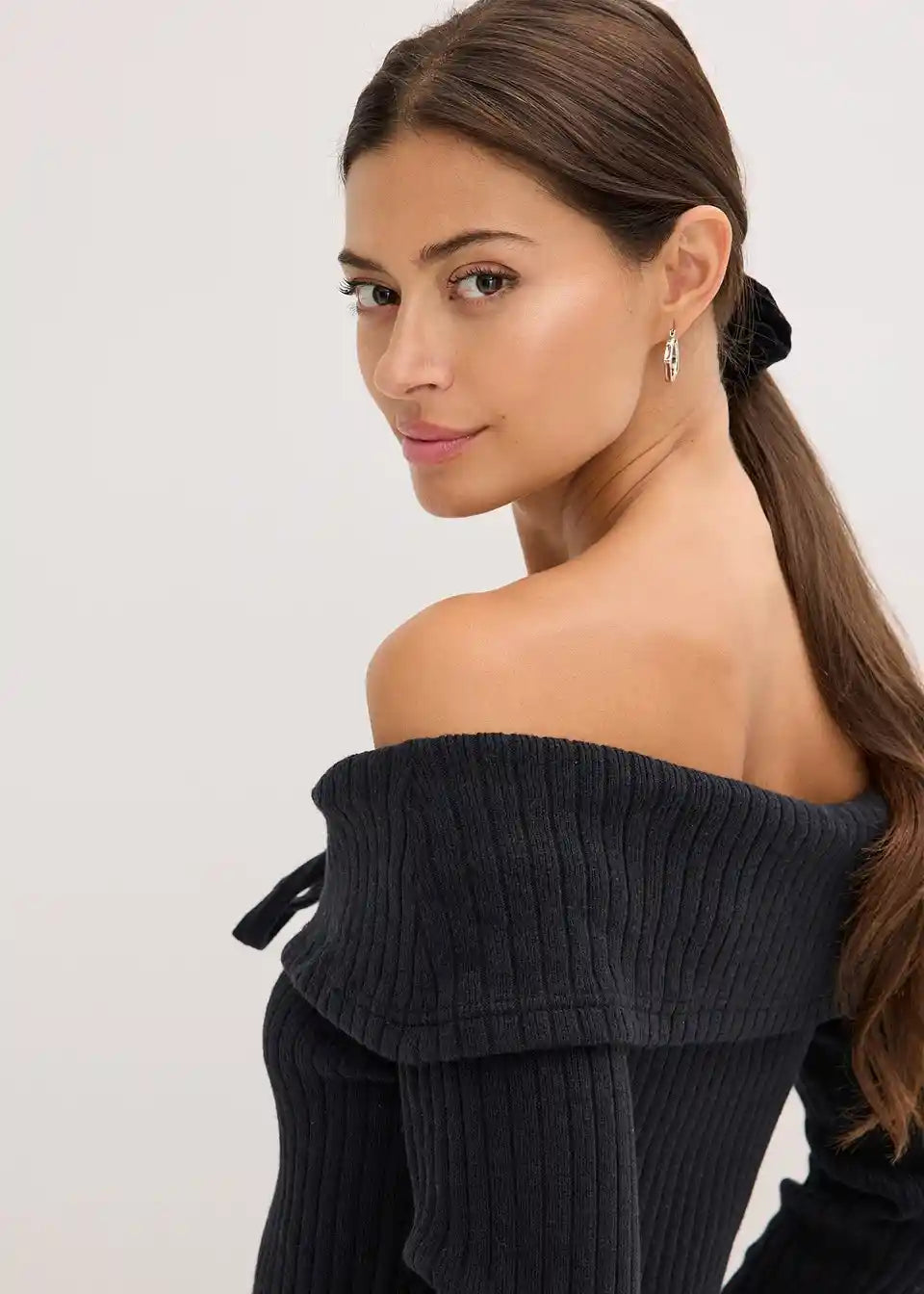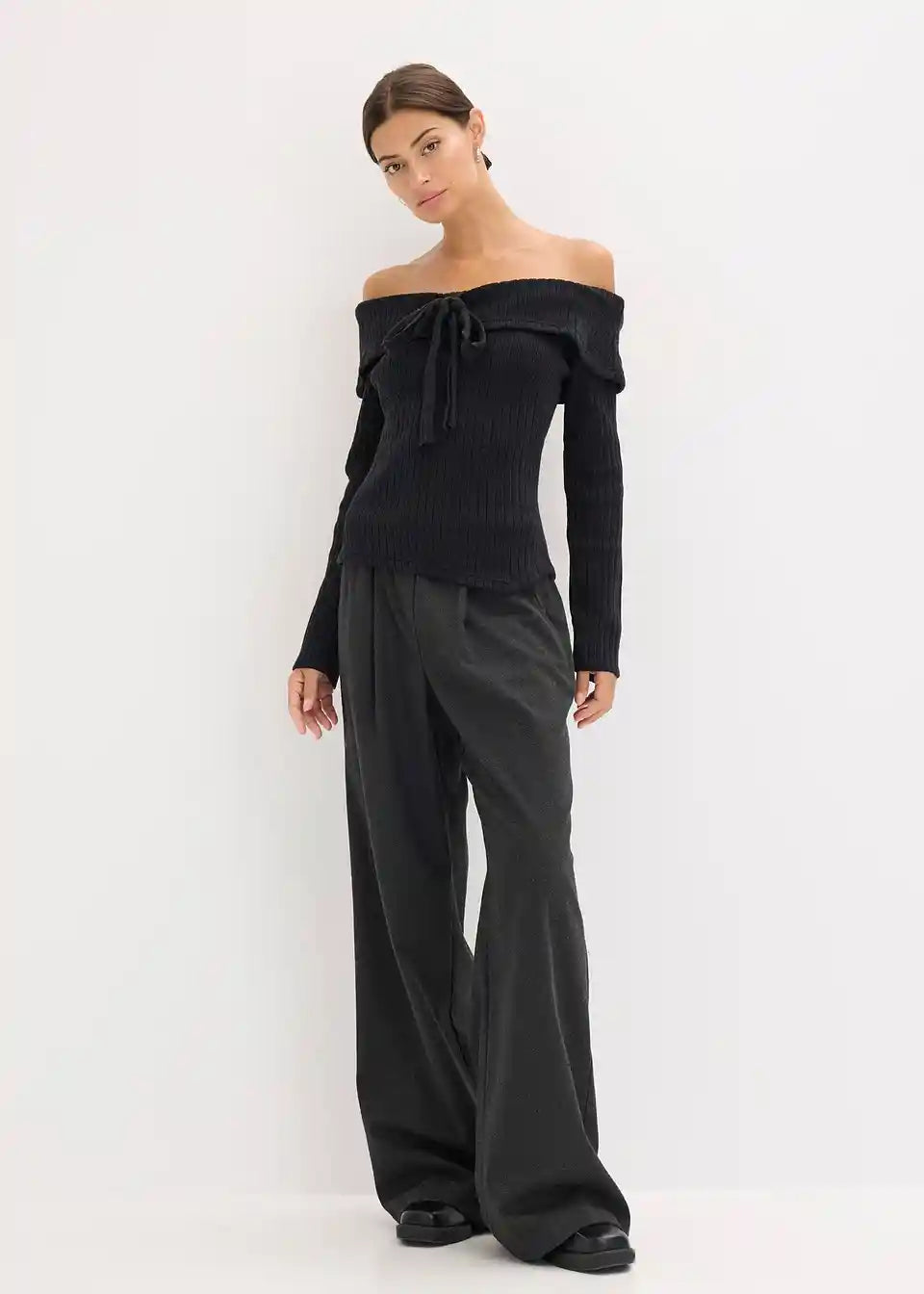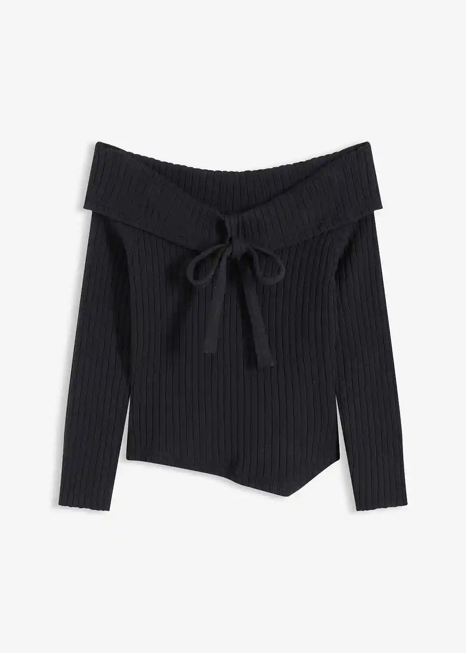 Moderner Carmenpullover mit Rippmuster