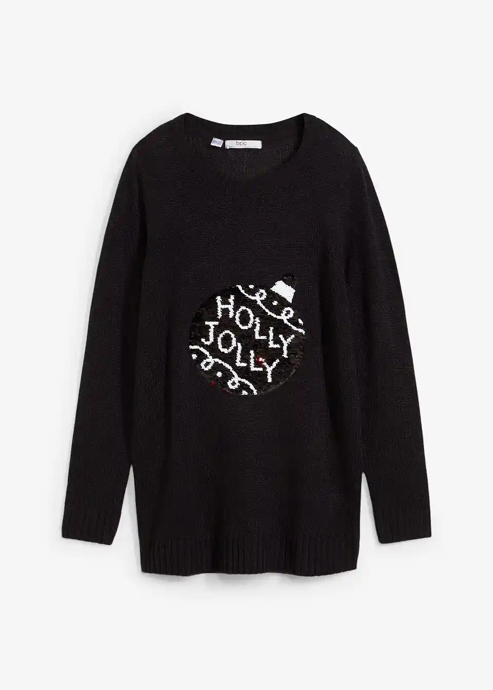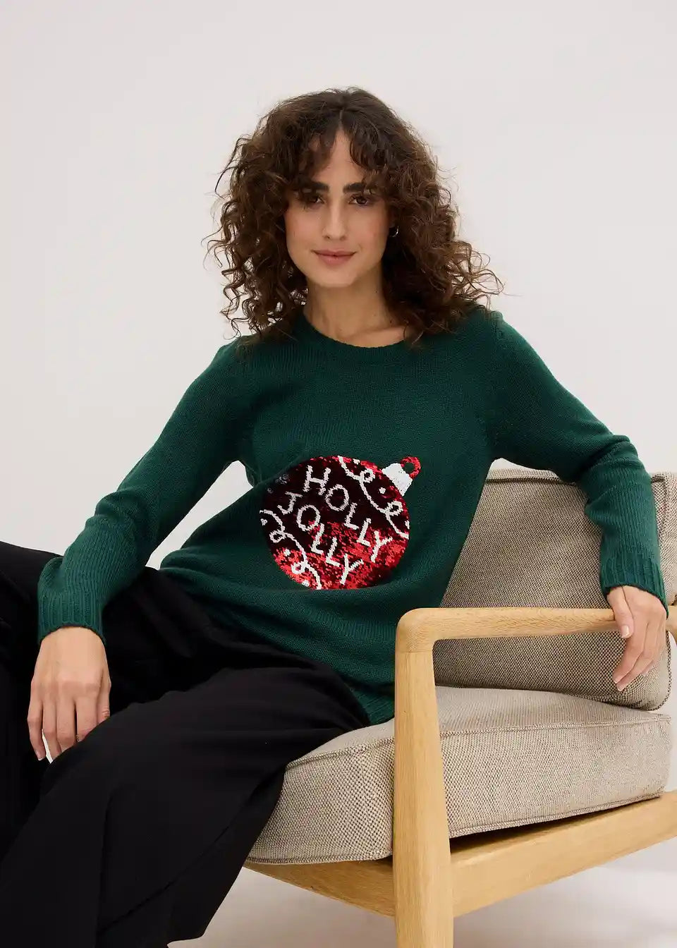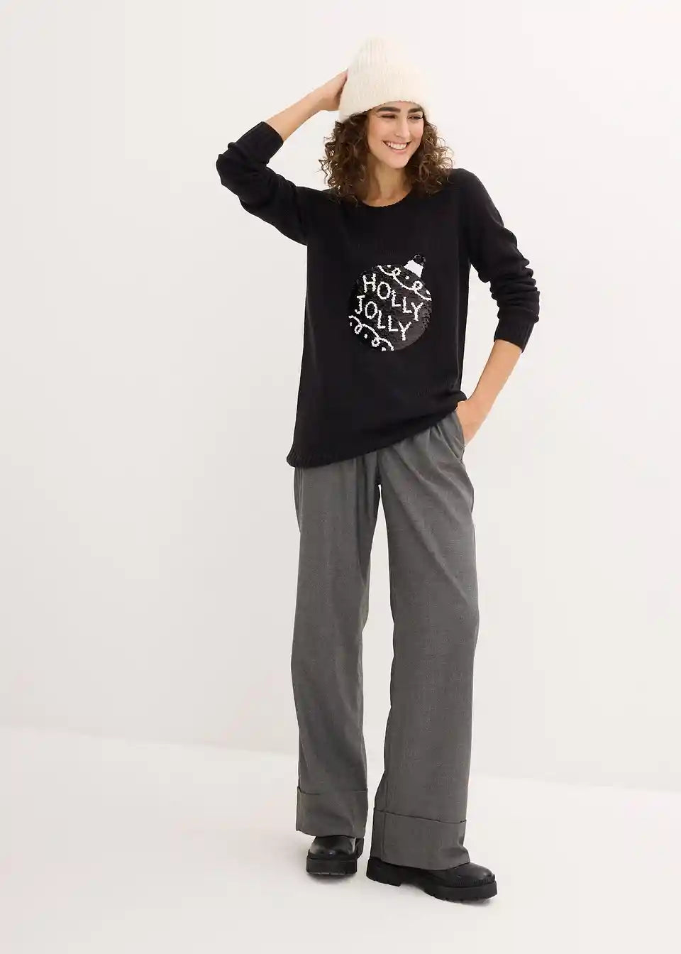 Gemütlich geschnittener Weihnachtspullover mit Rundhalsausschnitt und Wendepailletten