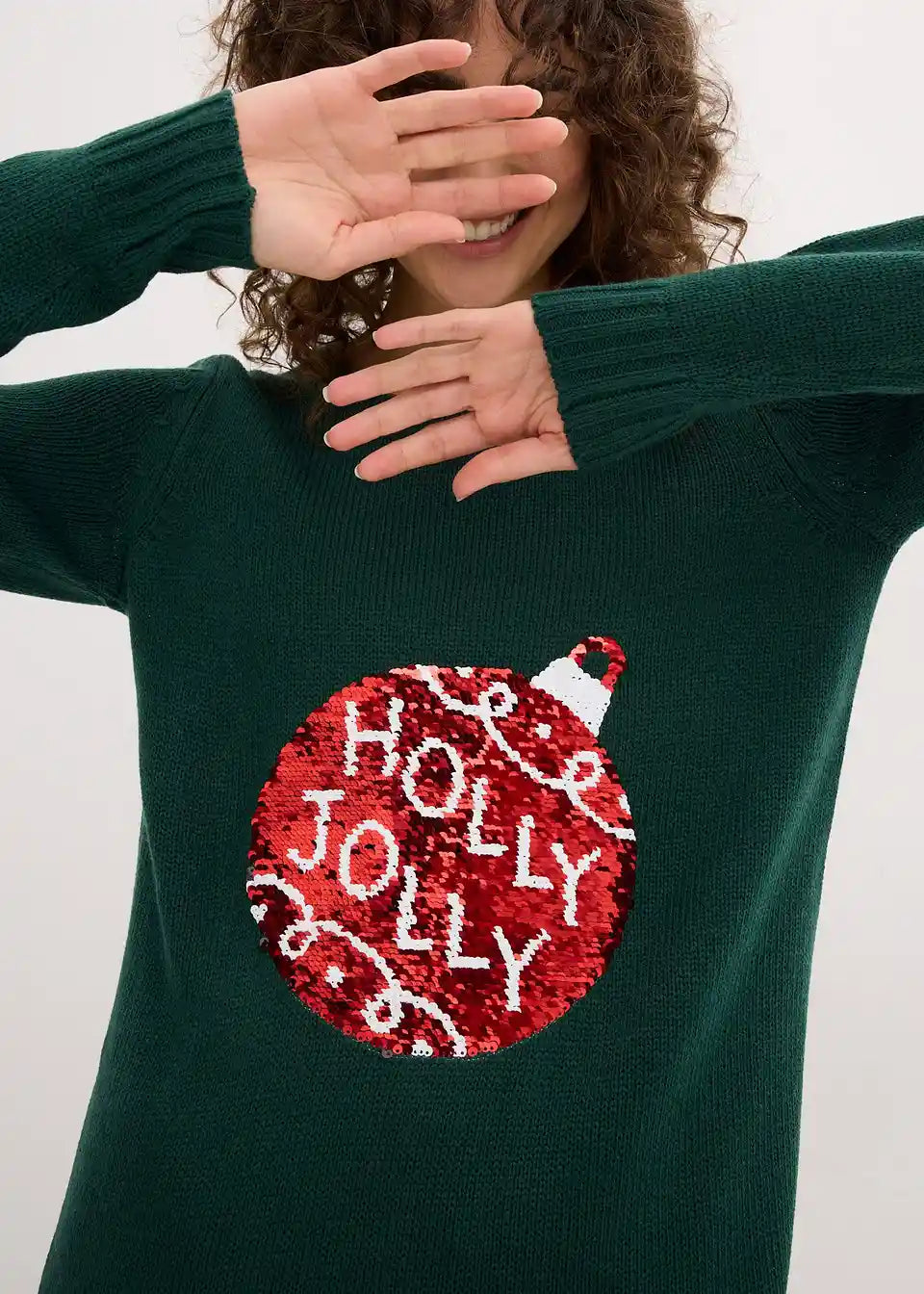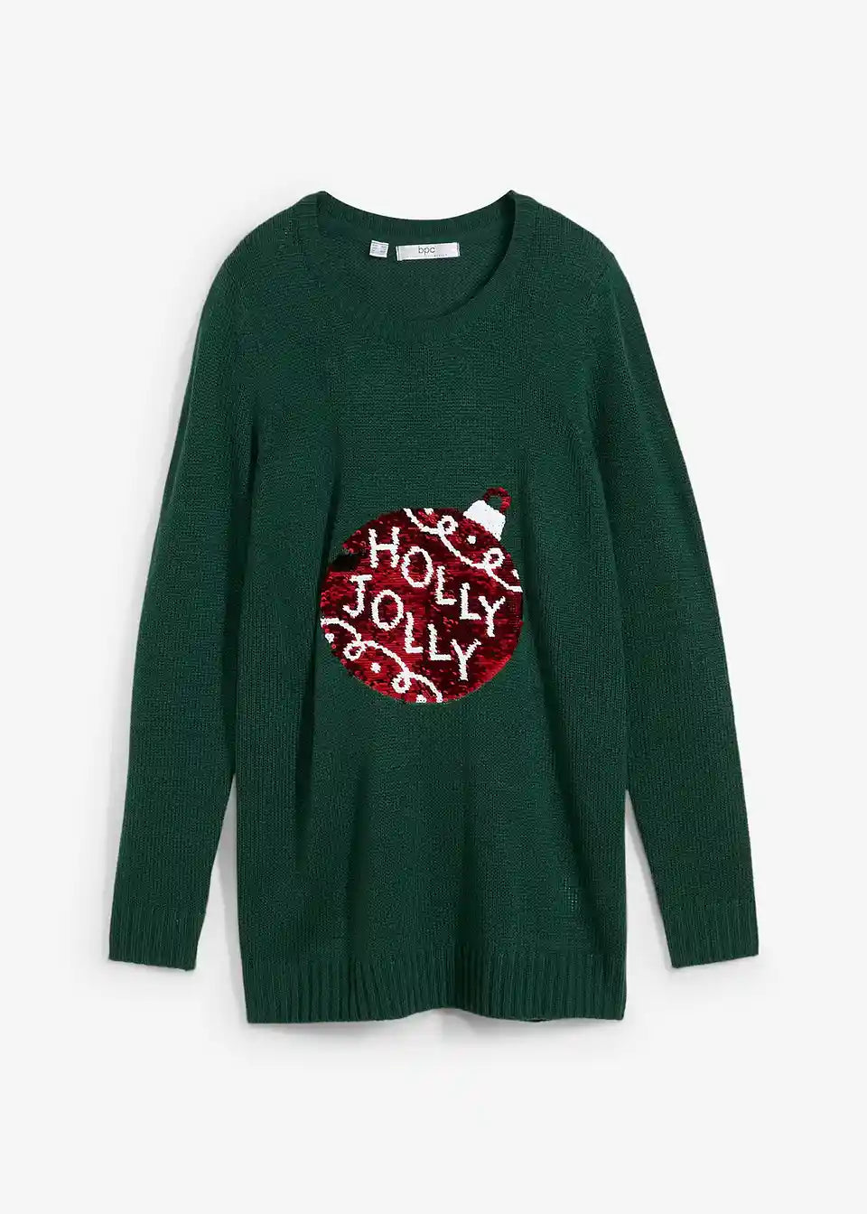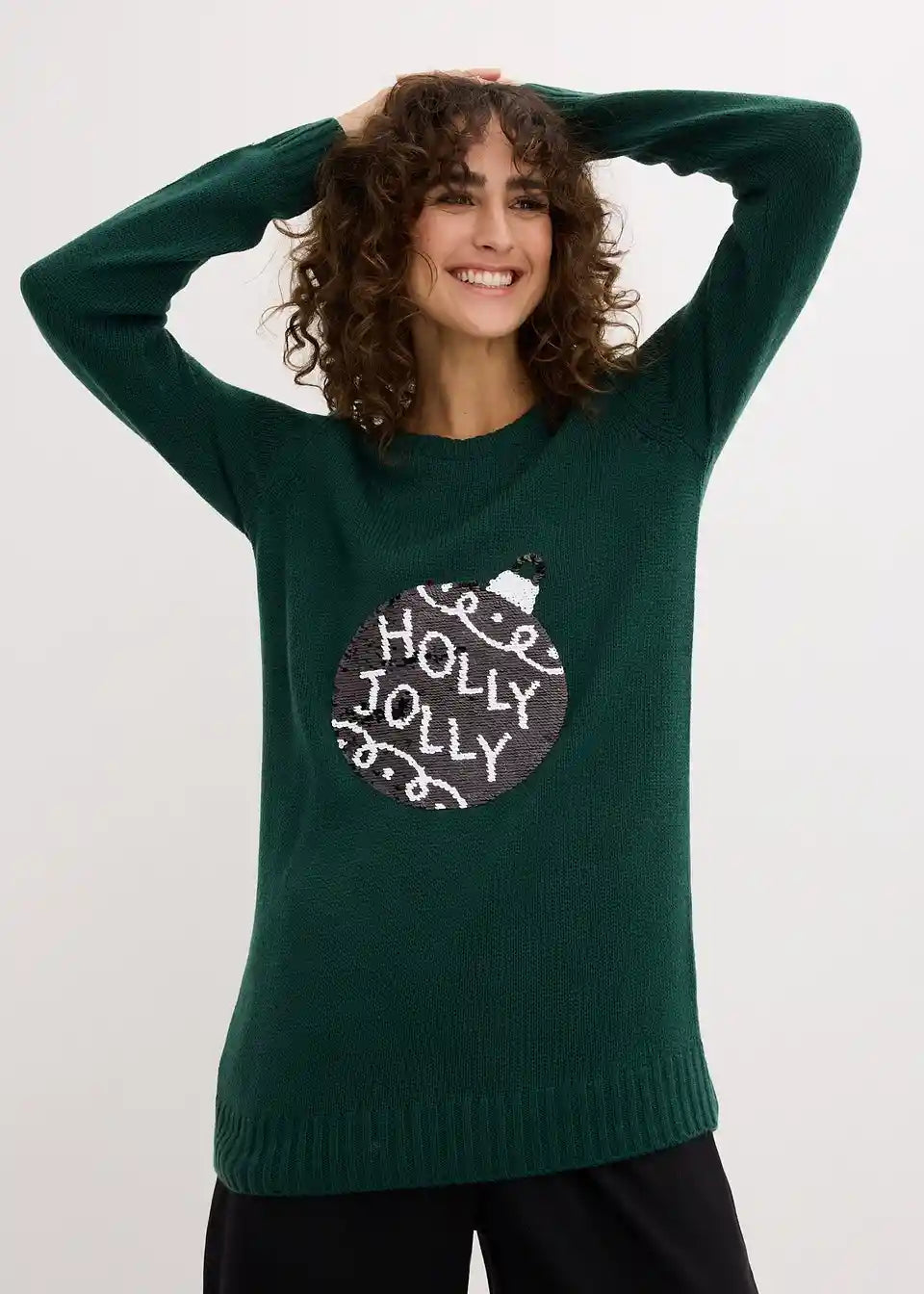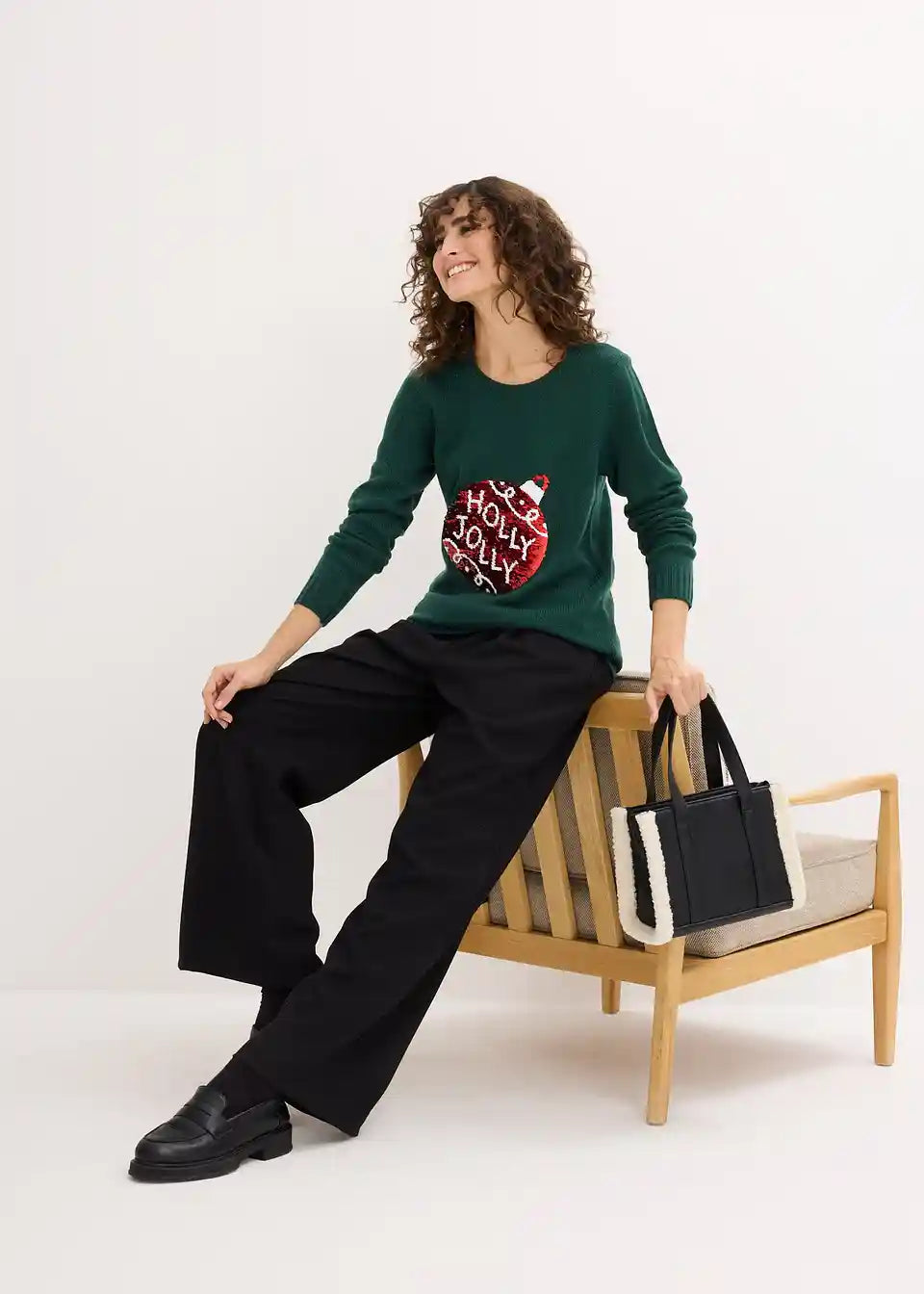 Gemütlich geschnittener Weihnachtspullover mit Rundhalsausschnitt und Wendepailletten