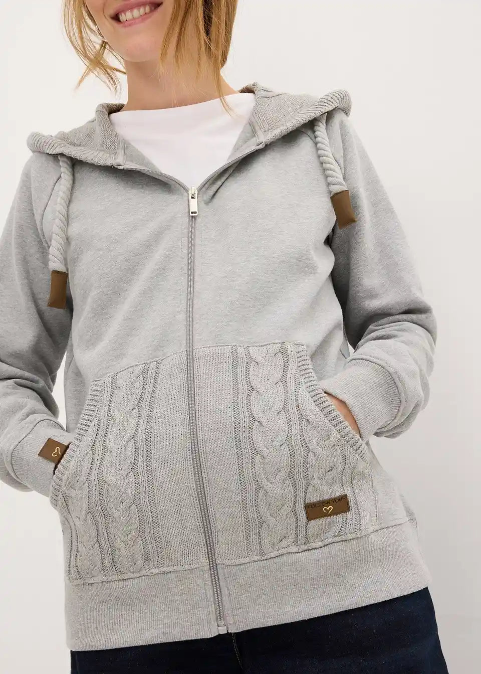 Sweatjacke mit schönen Strick- und Lederimitat-Details