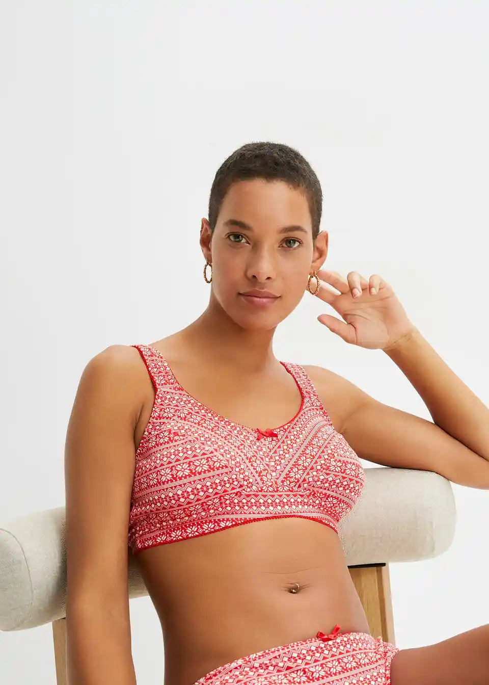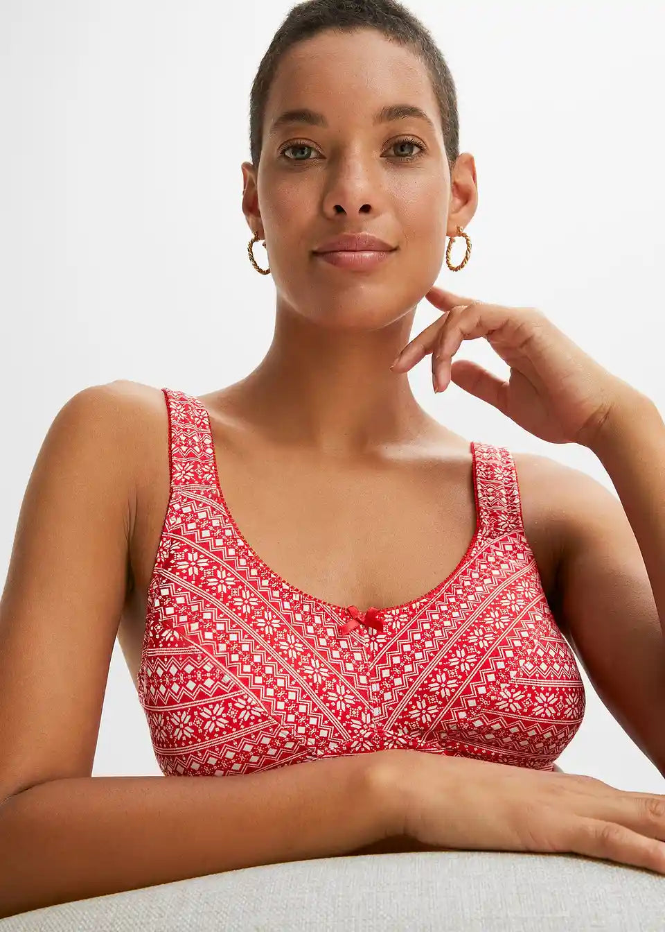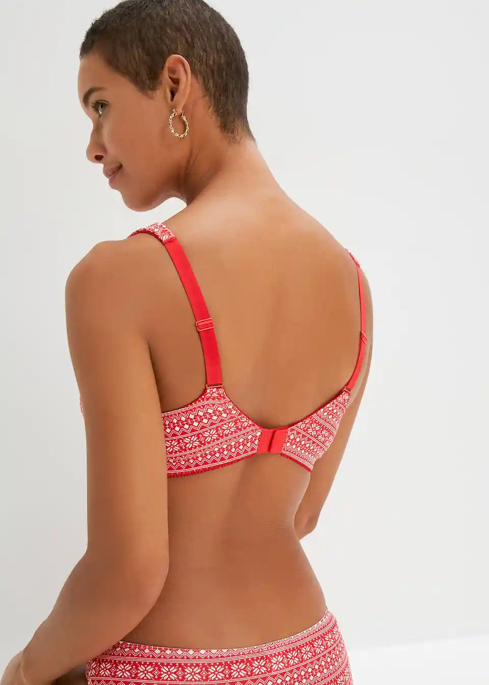 Dieser BH ist bügellos verarbeitet und hat ein Norweger Muster. Breite und gepolsterte Träger sowie Bio-Baumwolle sorgen für ein angenehmes Tragegefühl.