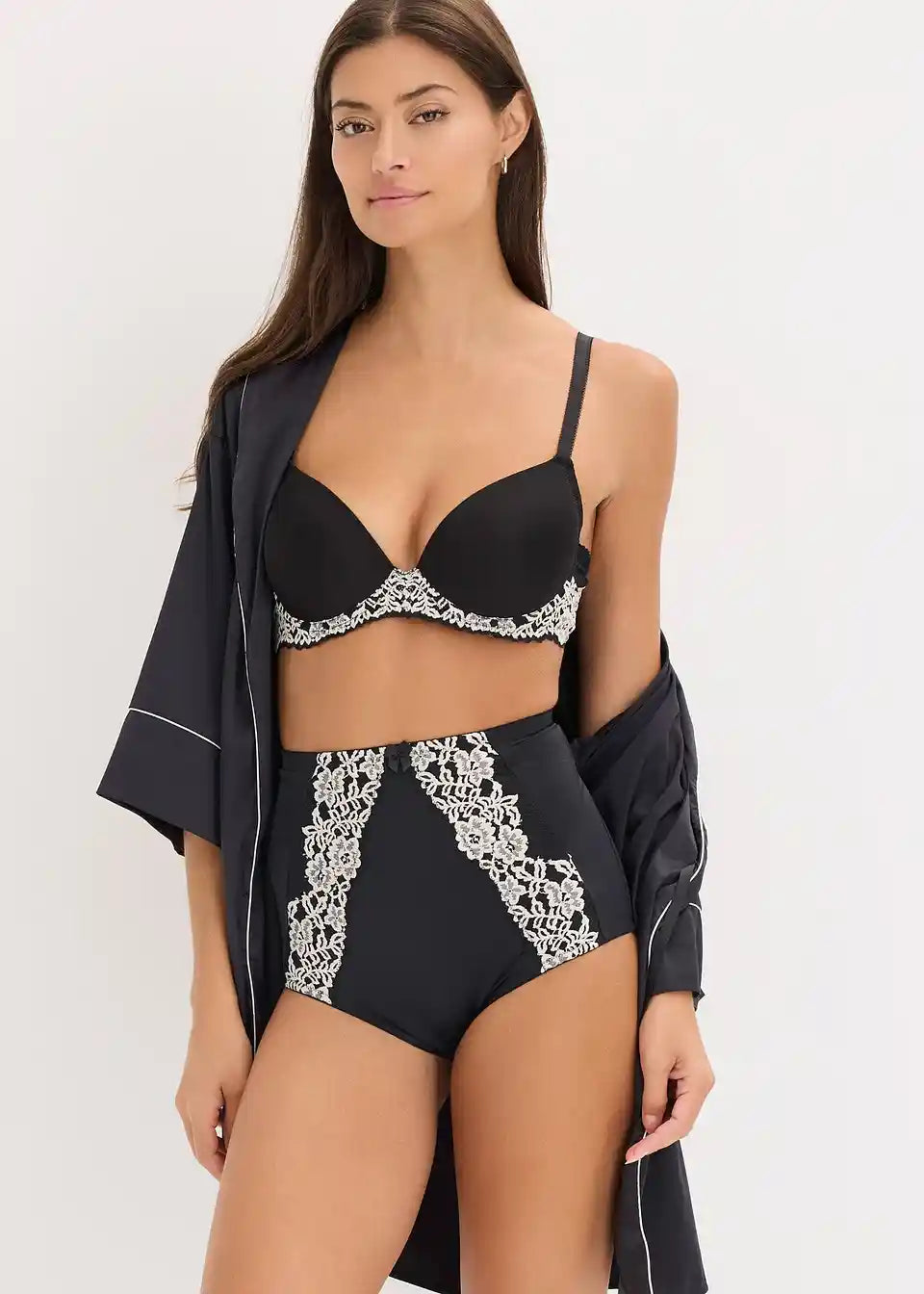 Schalen-BH mit zweifarbiger Spitze mit recyceltem Polyamid.