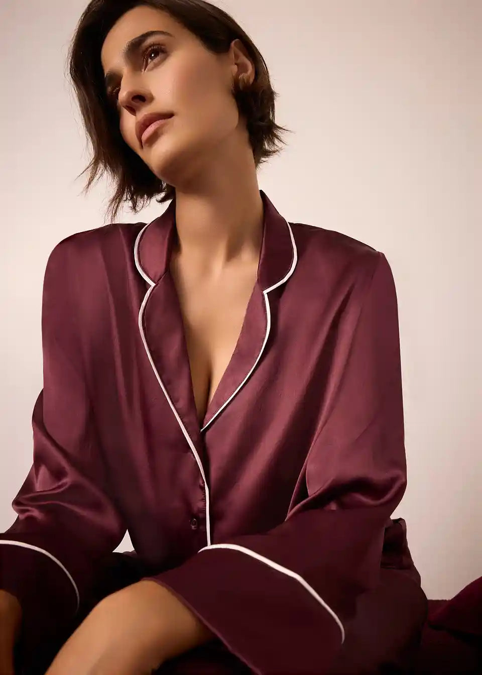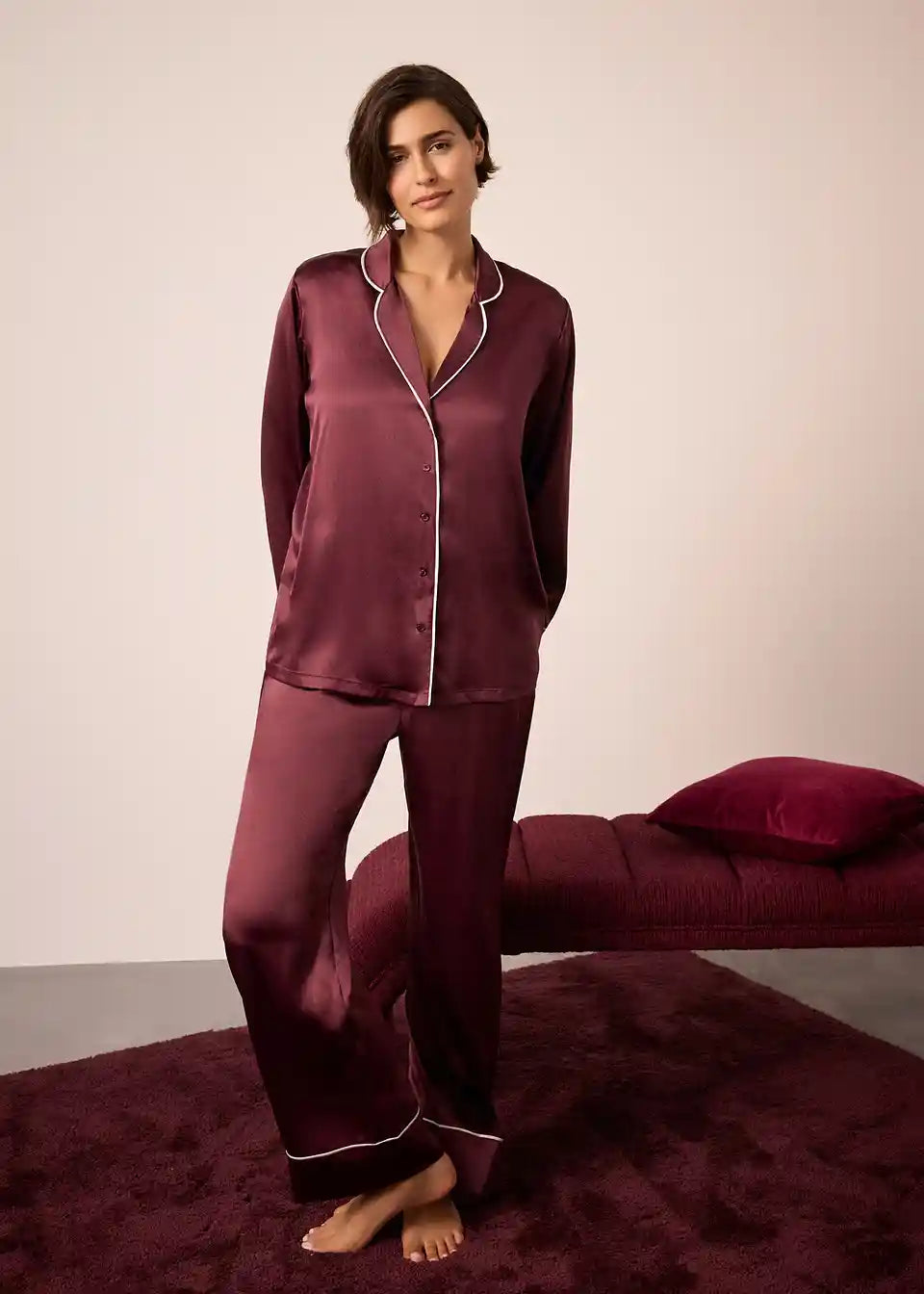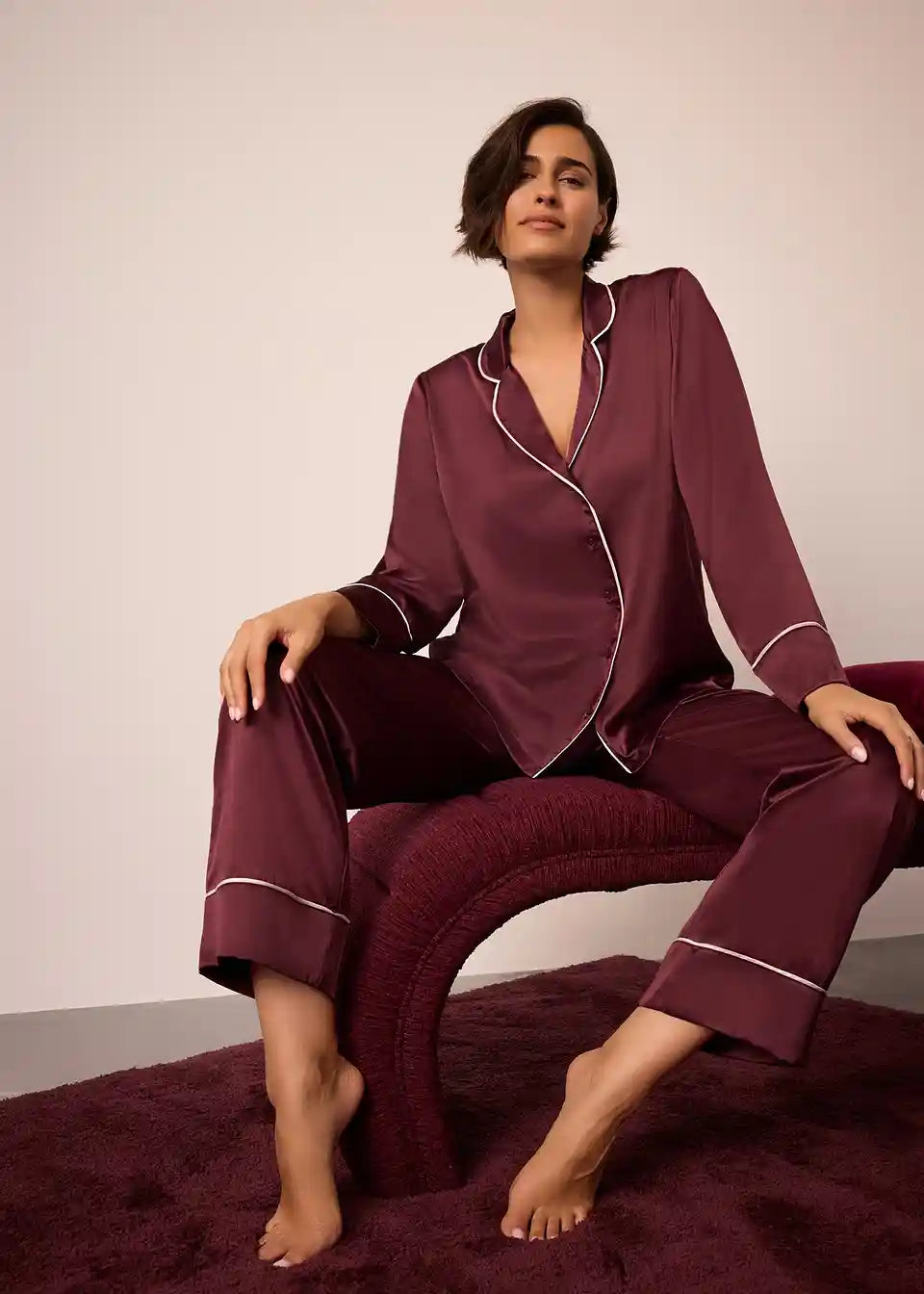 Gewebter moderner Pyjama aus Satin mit langer Hose und langarm Shirt