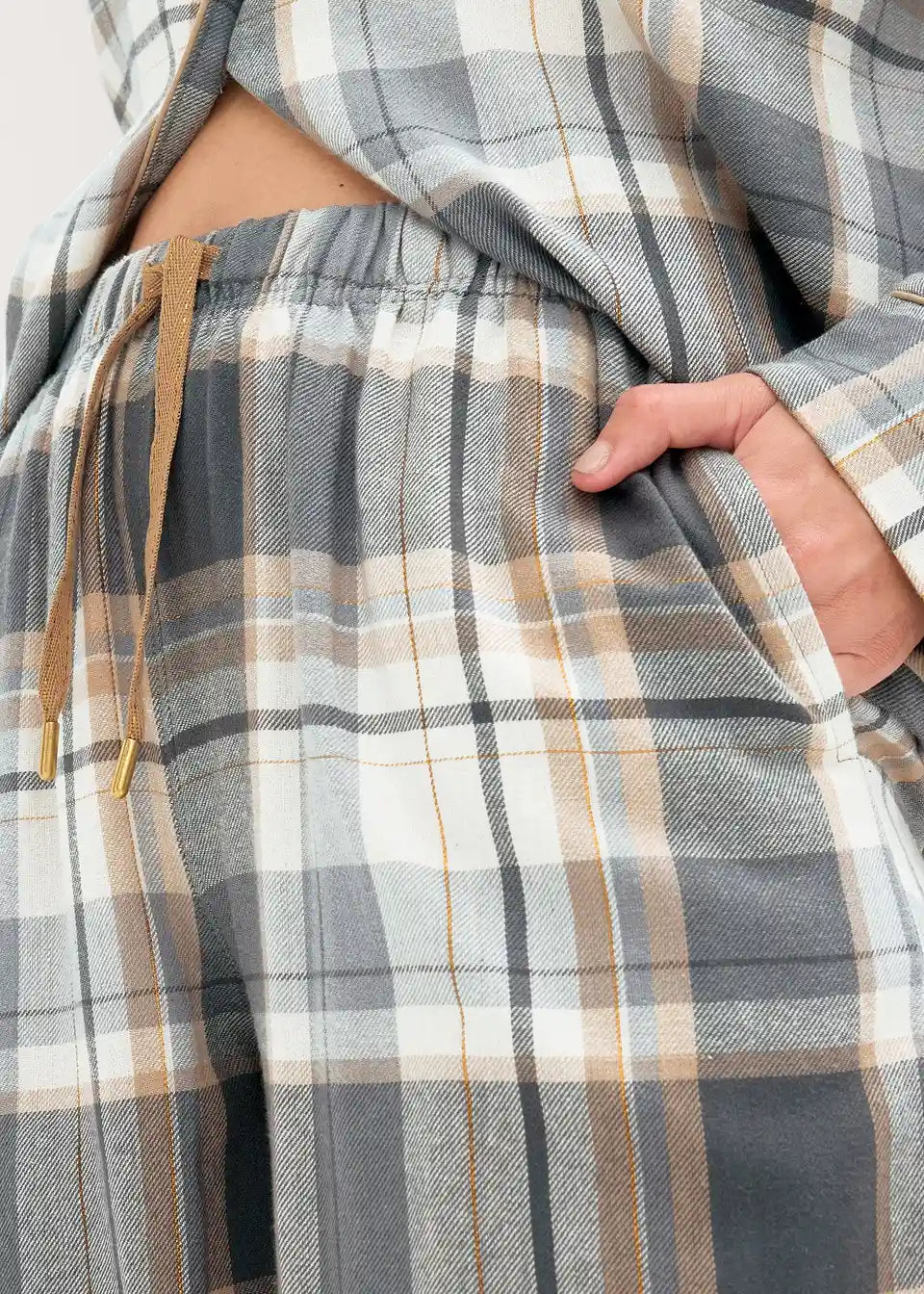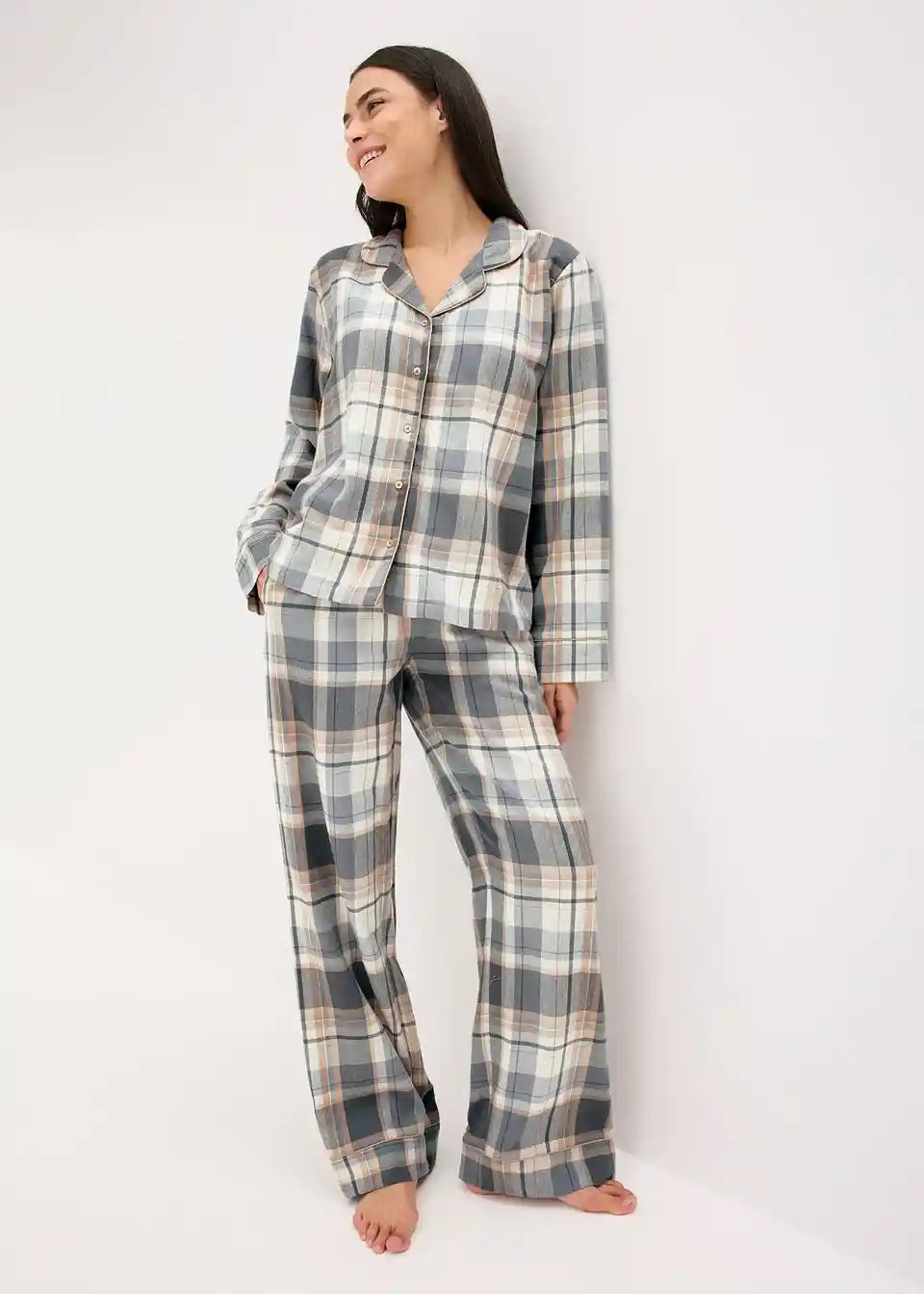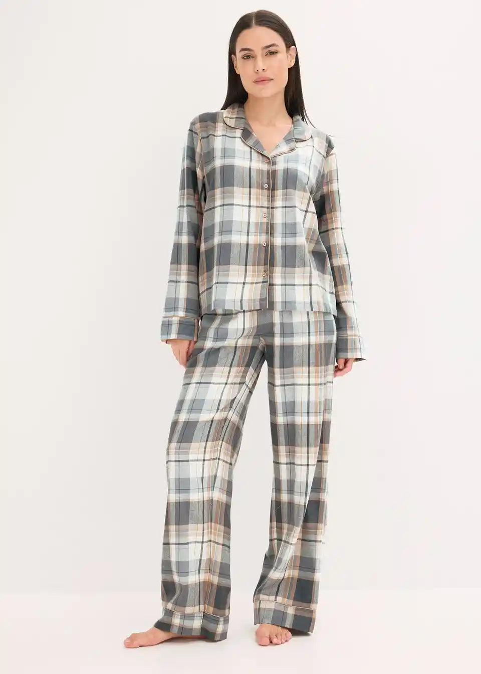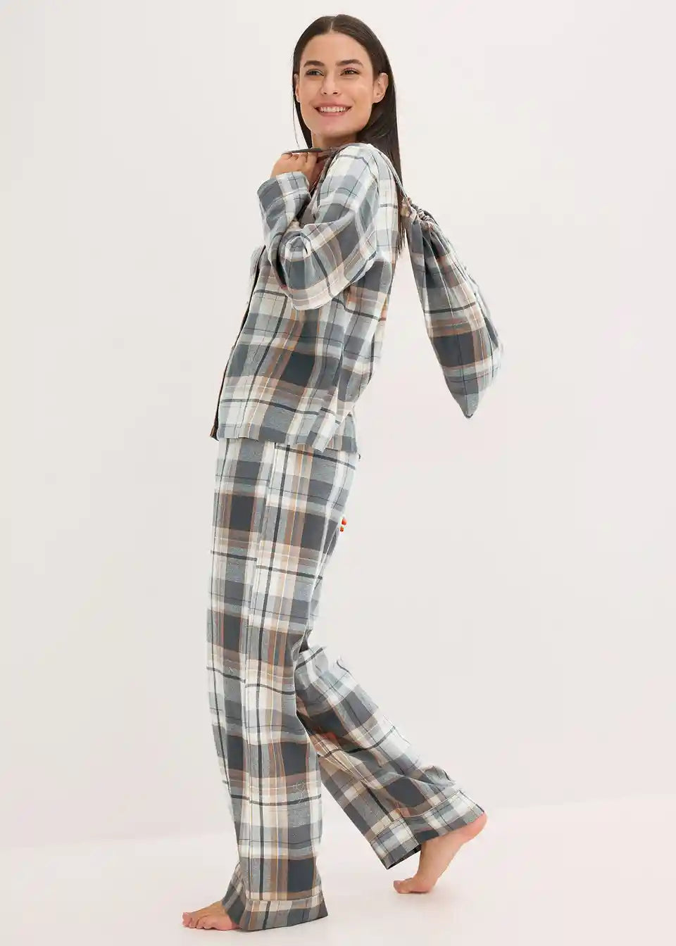 Gemütlicher Flanell Pyjama mit Bindeband und Eingriffstaschen