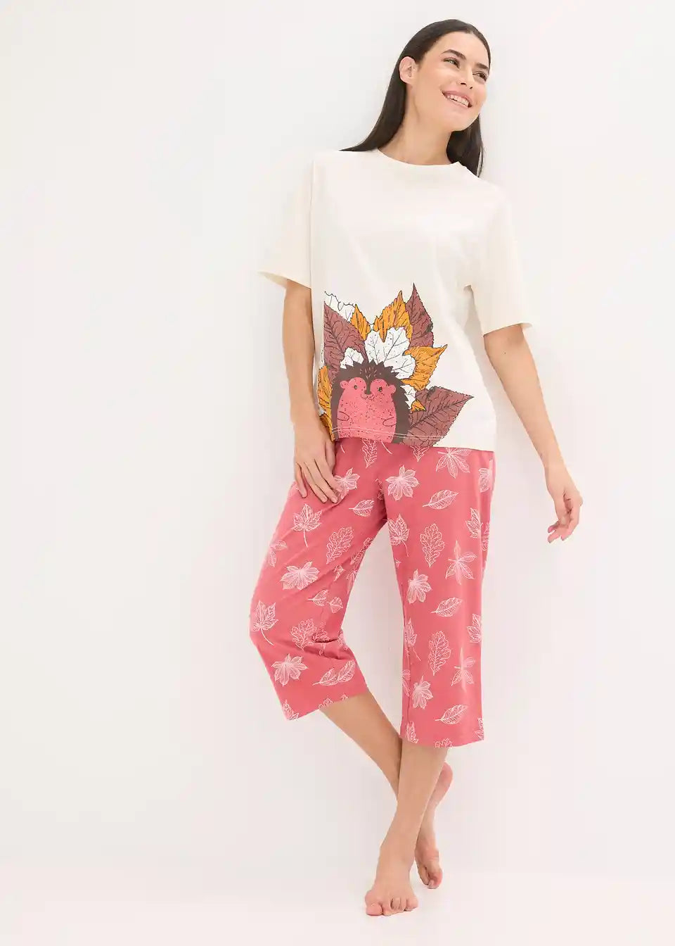 Capri Pyjama mit herbstlichen Druck in einem gemütlichen lockeren Schnitt