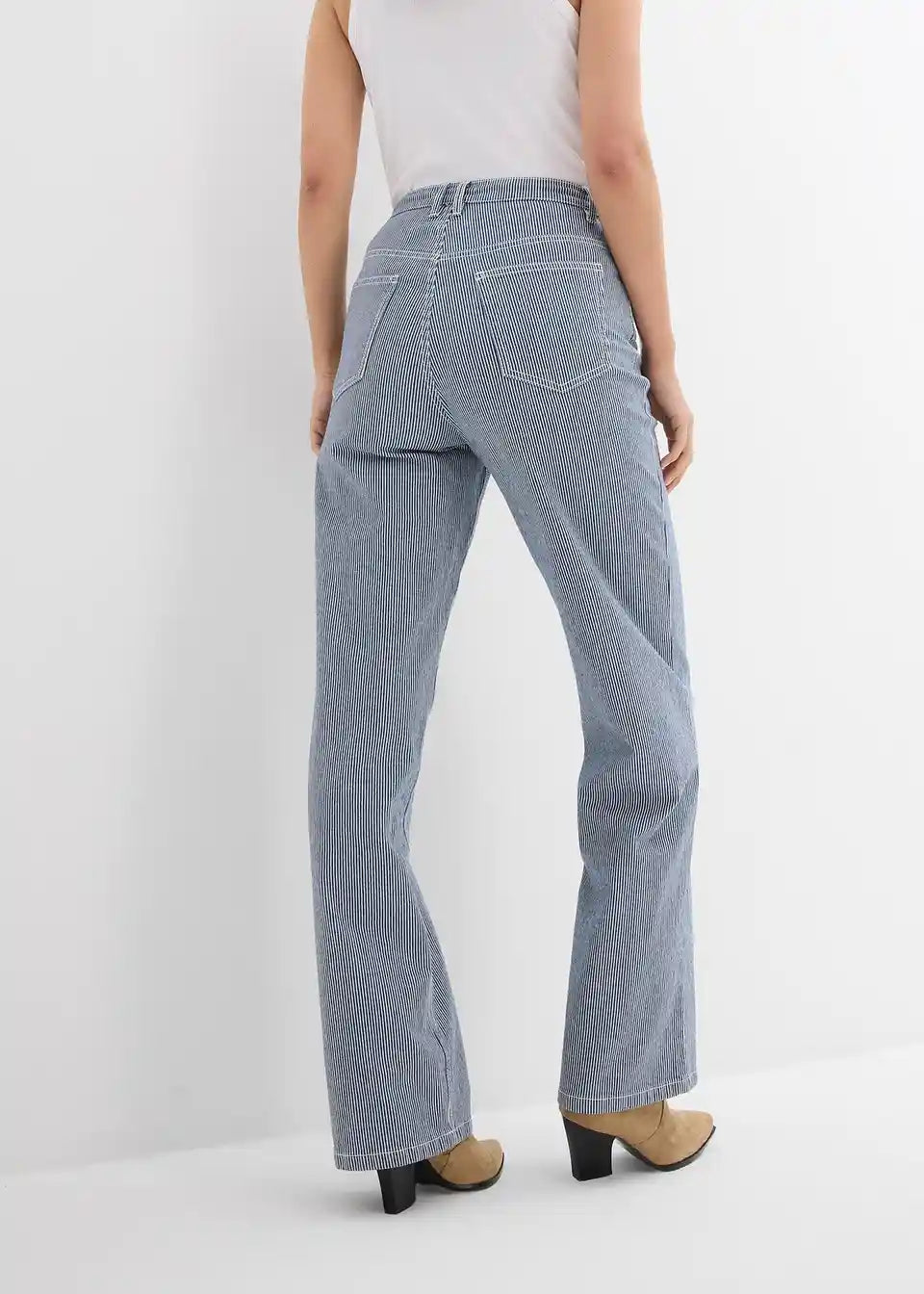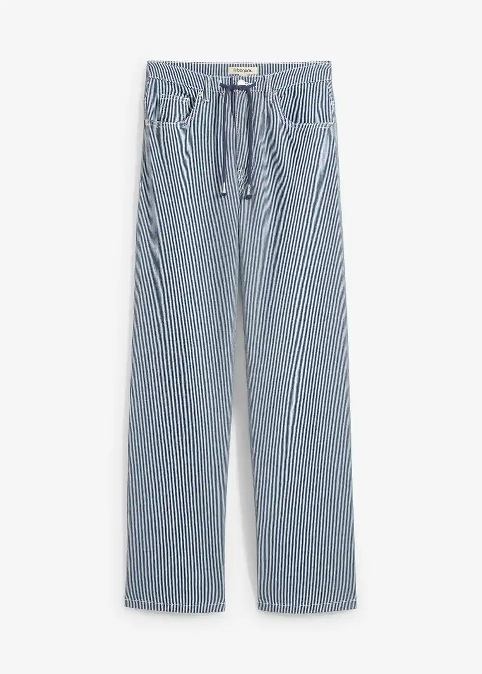 Gestreifte Jeans mit weitem Bein und hohem Bund