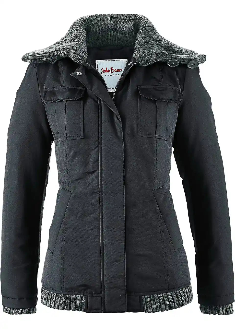 Warm und trendy eingepackt - das ist man in dieser coolen Winterjacke aus der aktuellen Kollektion von John Baner.Die figurbetont geschnittene Jacke hat vier Taschen auf der Vorderseite: zwei Eingrifftaschen seitlich und zwei aufgesetzte Taschen in Brusthöhe. Mit ihren modischen Strick-Details an Kragen, Ärmeln und Bund ist sie ein echter Hingucker.