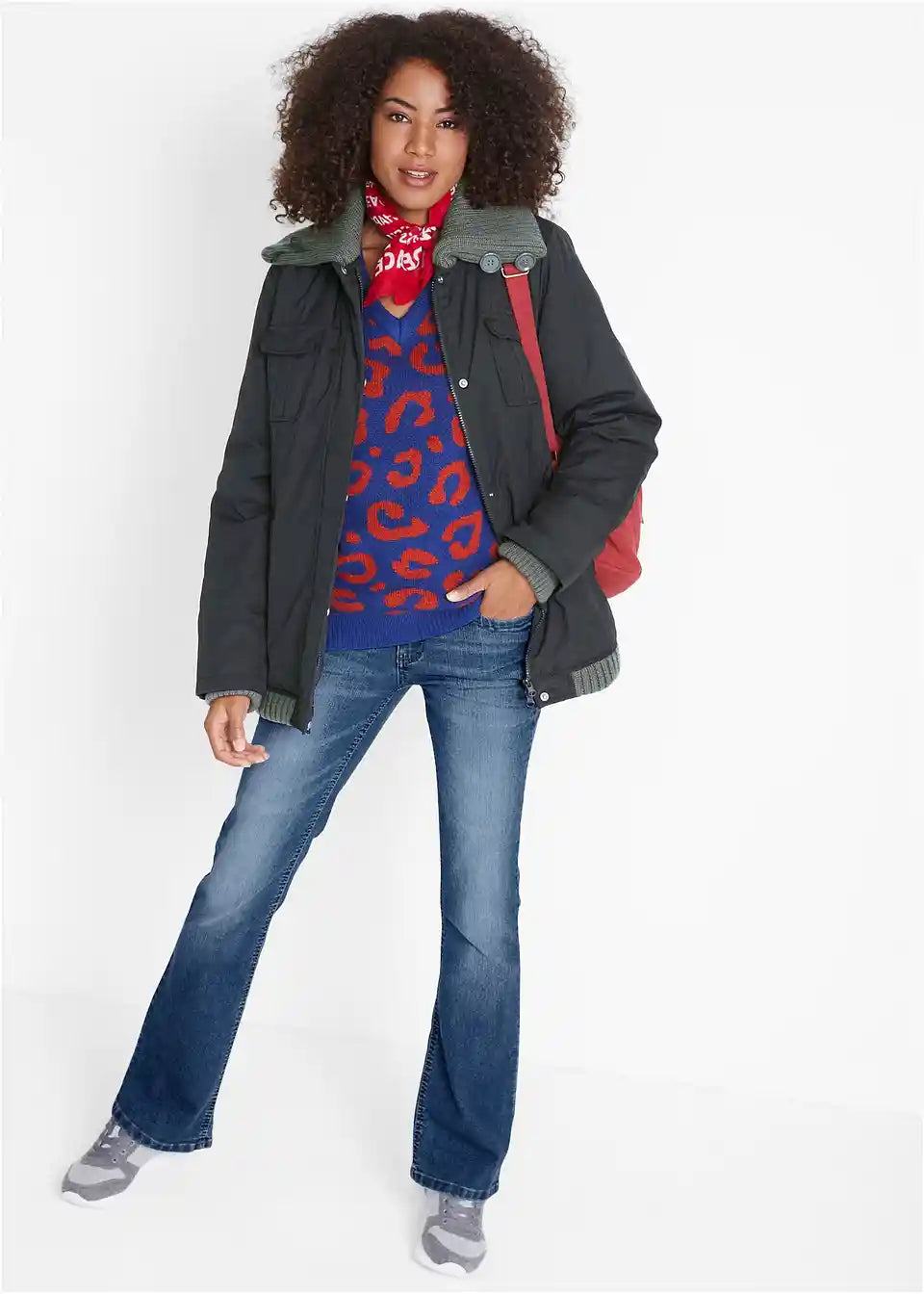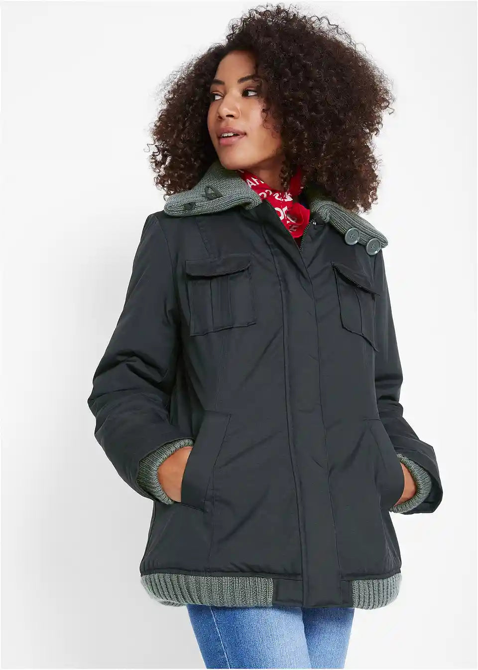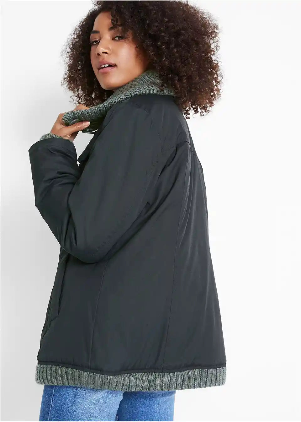 Warm gefütterte Winterjacke mit angesagten Strick-Details