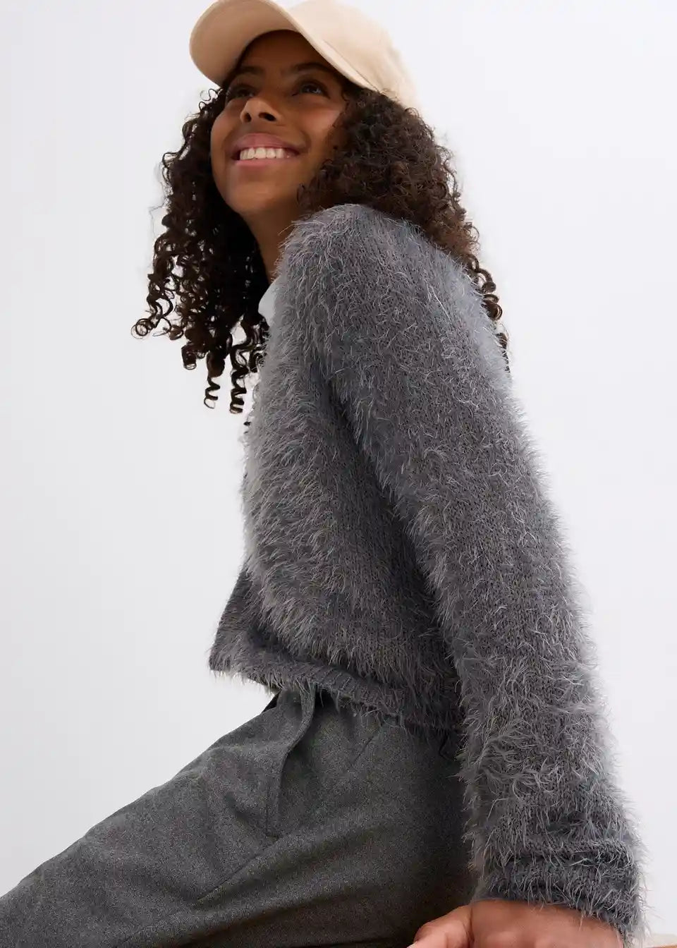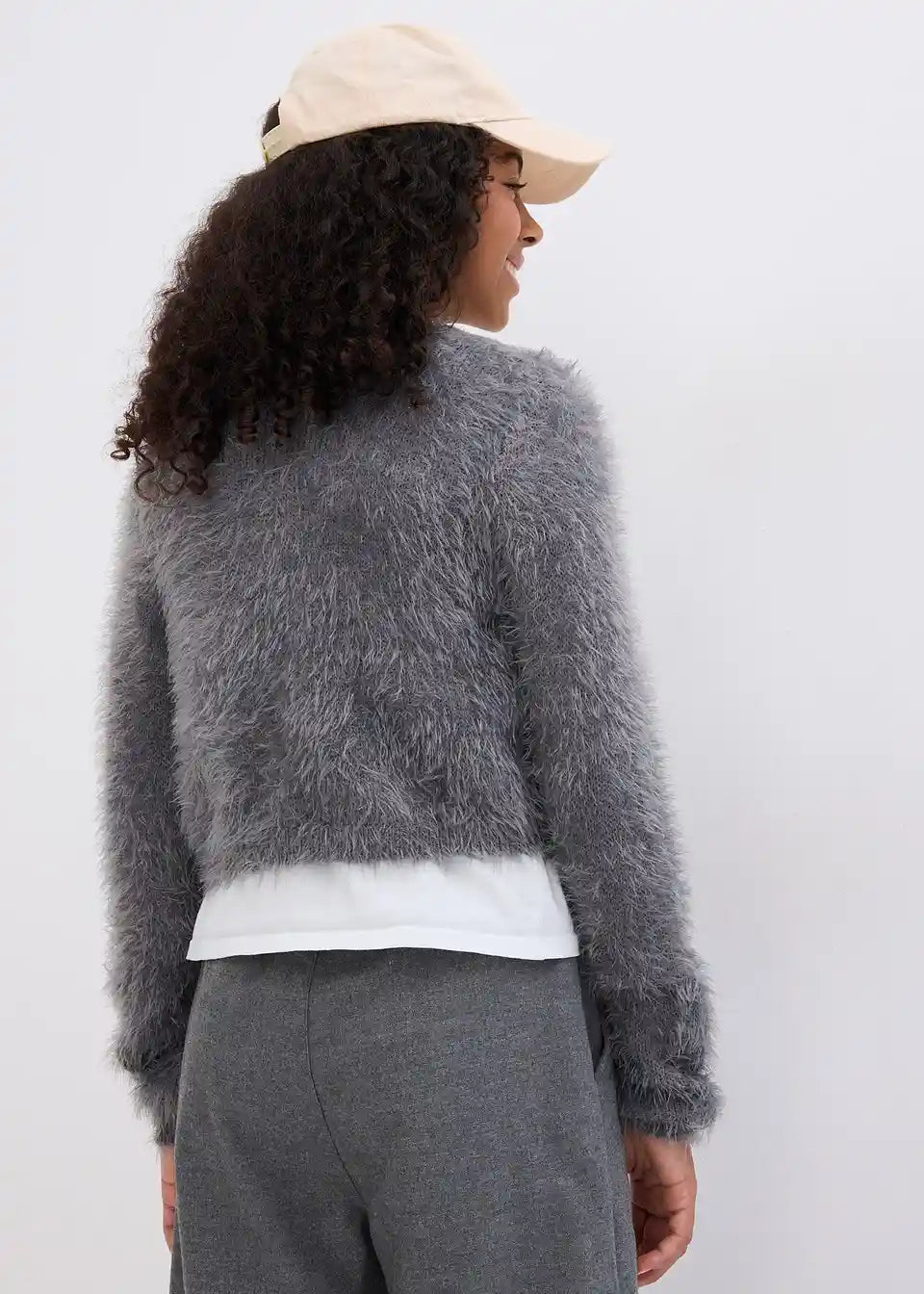 Super flauschiges Bolerojäckchen mit glitzerndem Knopf