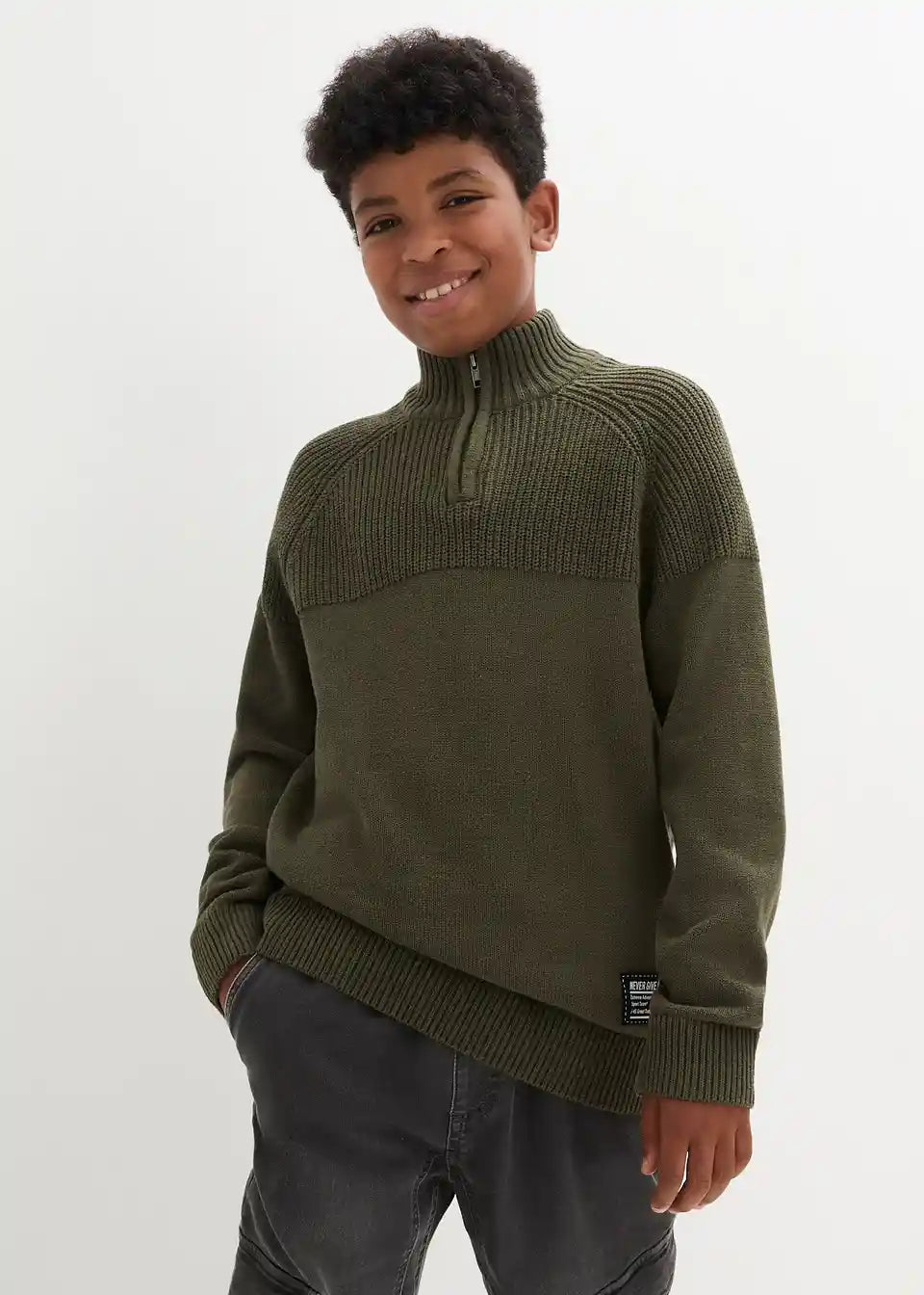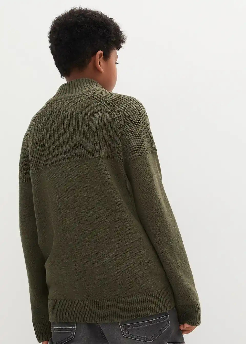 Pullover mit Komfortschnitt, Stehkragen und Ripp-Bündchen