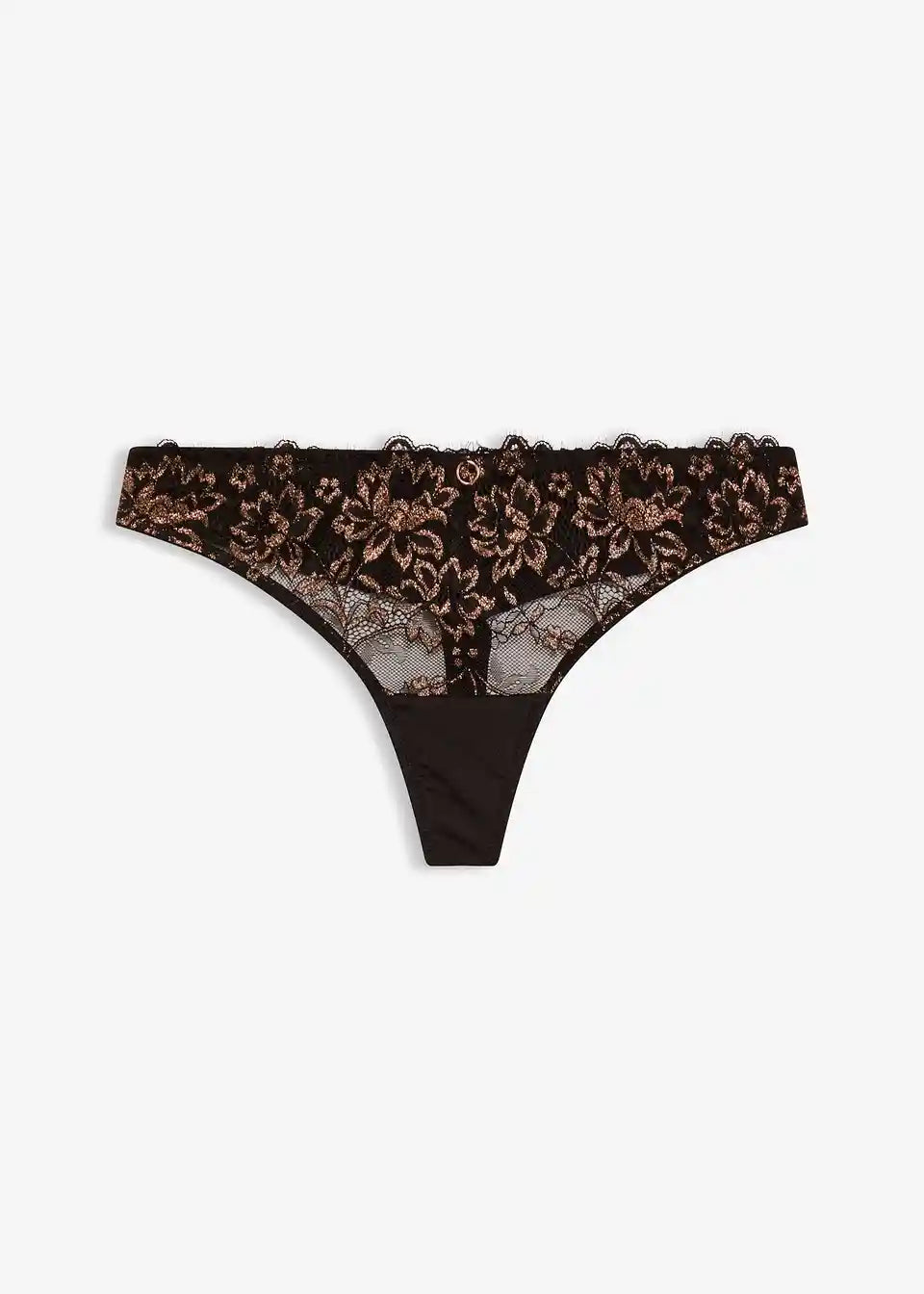 Obermaterial: 88% Polyamid, 12% Elasthan, Spitze: 48% Polyamid, 32% Polyamid (recycelt), 12% Elasthan, 8% metallisierte Fasern