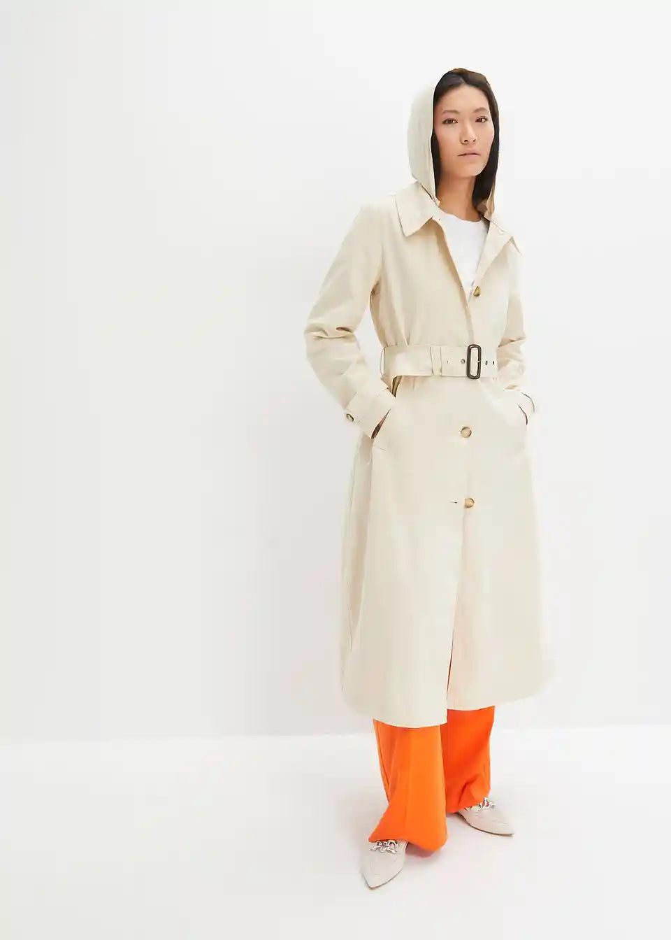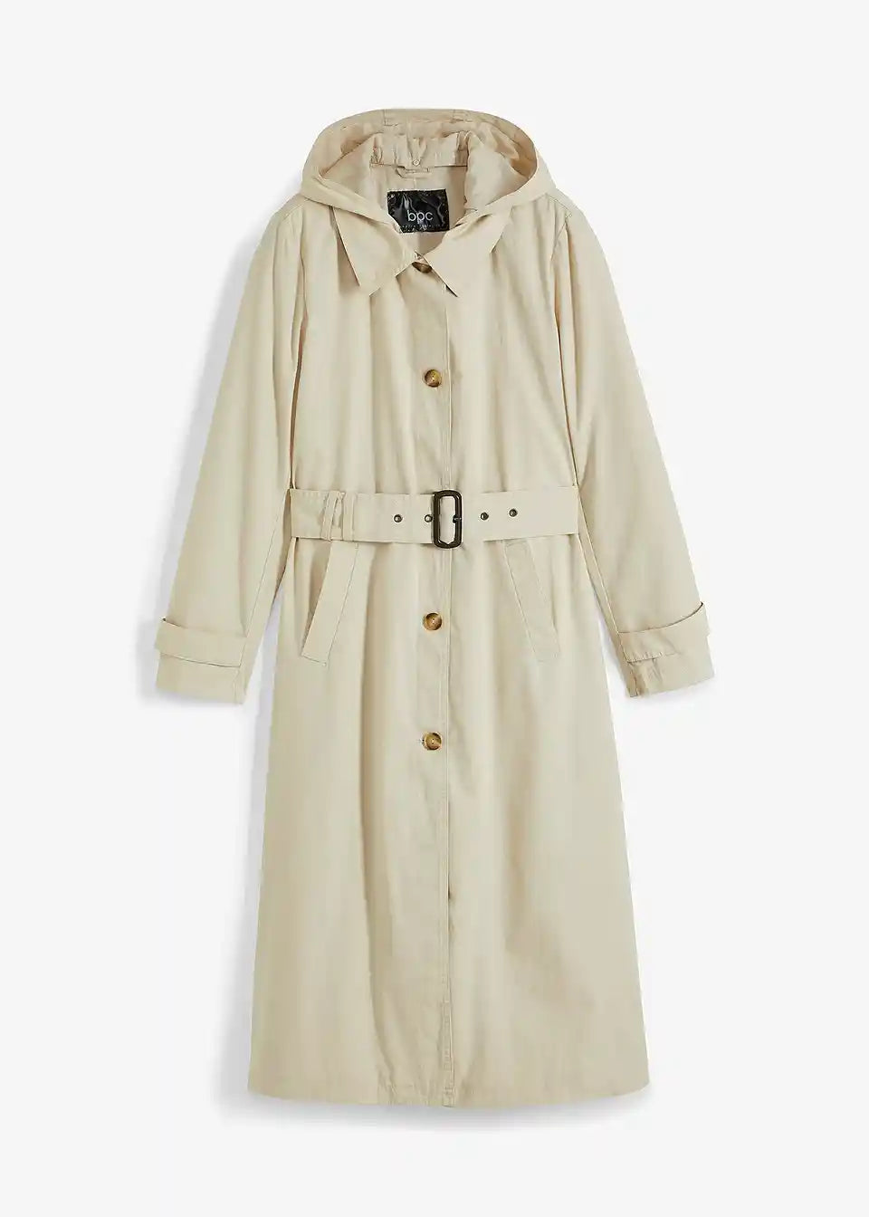 Wadenlanger Mantel in Trench-Optik mit abnehmbarer Kapuze