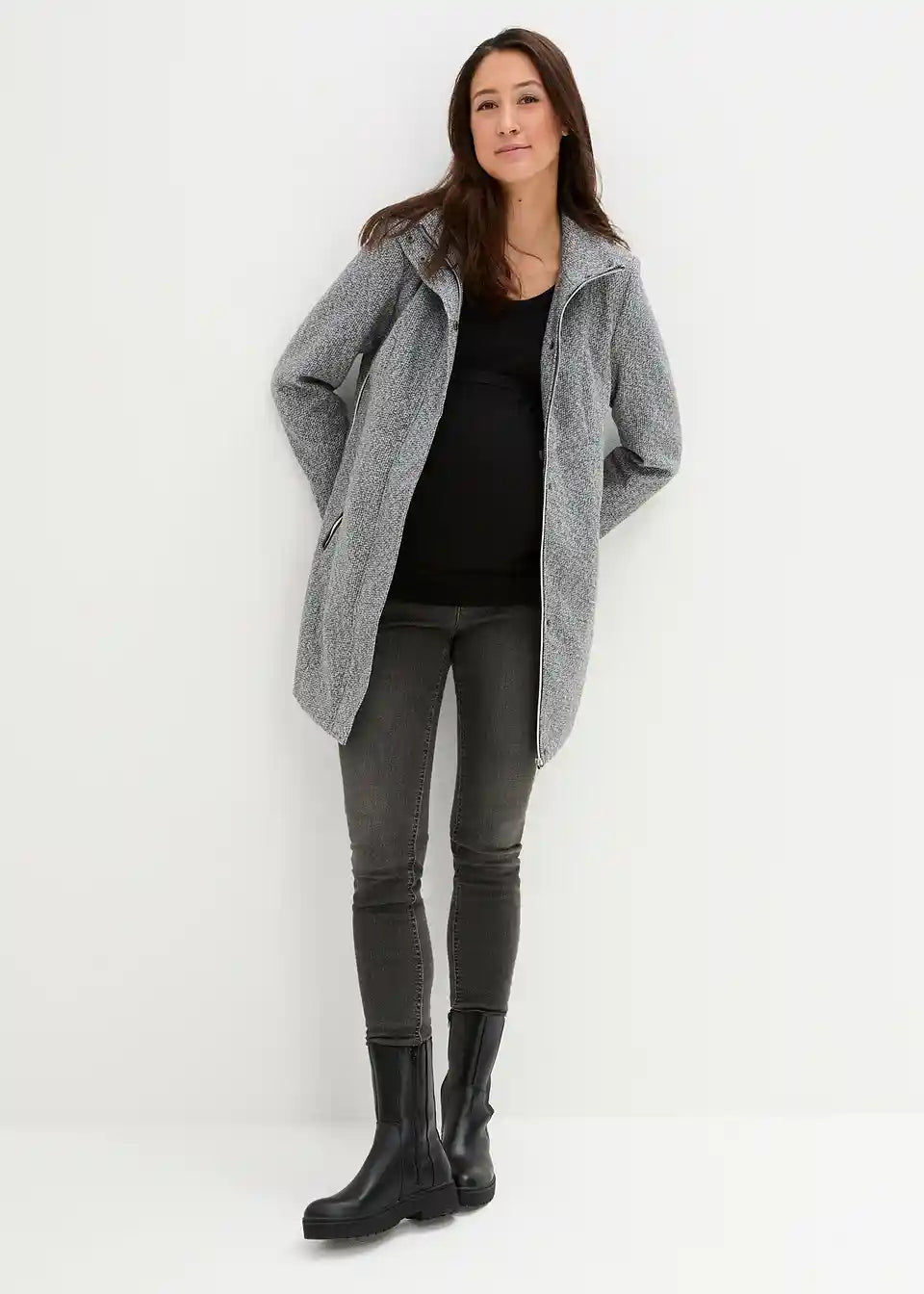 Umstands-Kurzmantel mit Trageeinatz in Woll-Optik