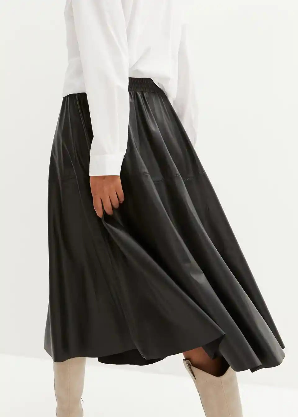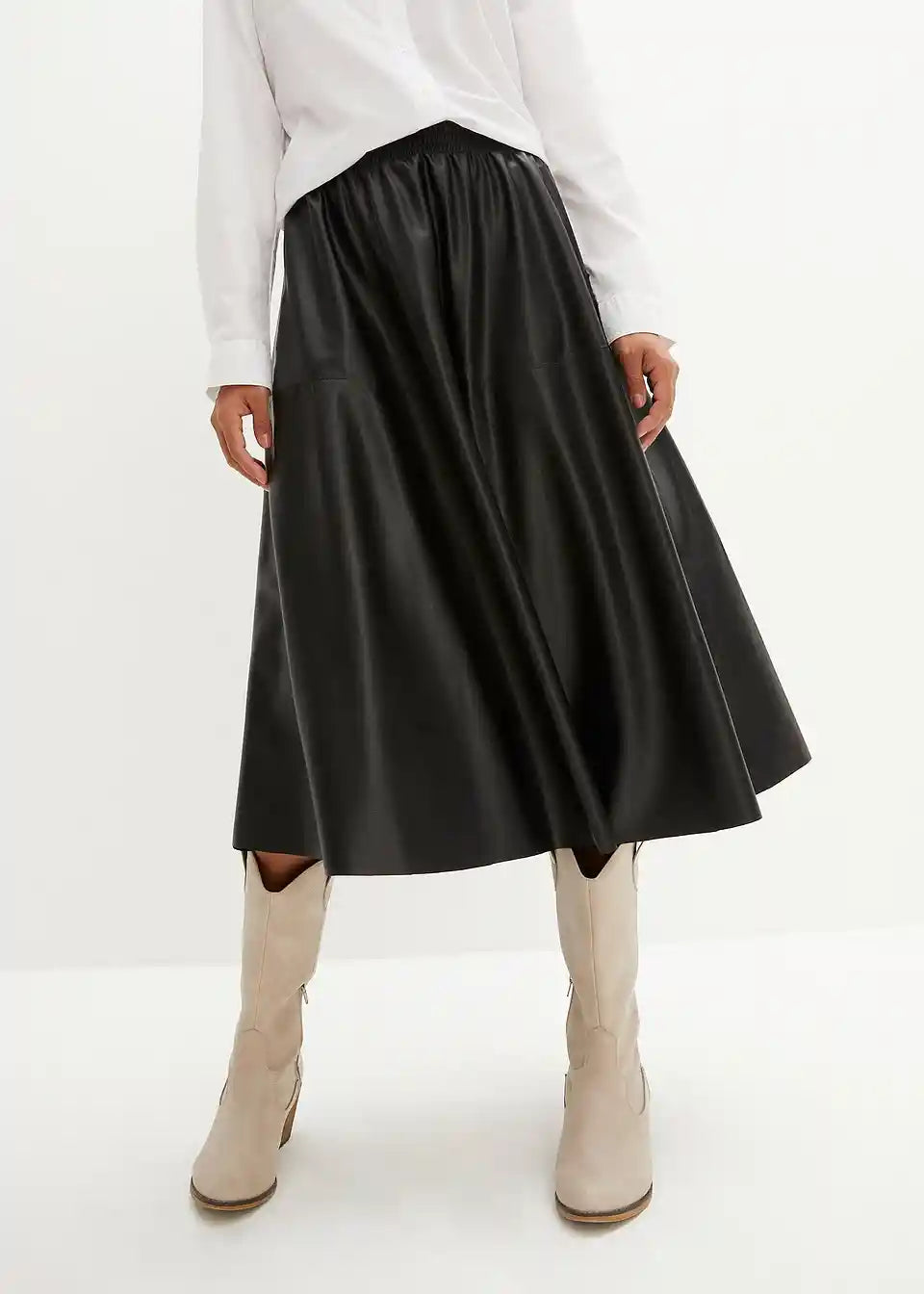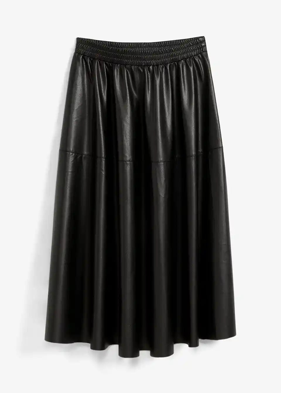 Modischer Lederimitat-Midirock mit elastischem Bund