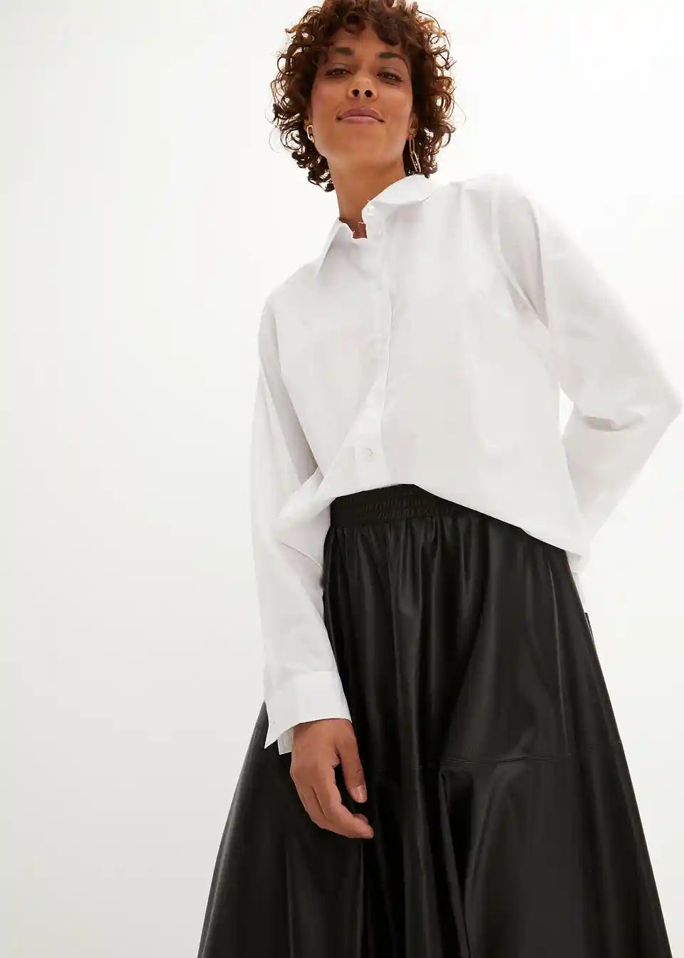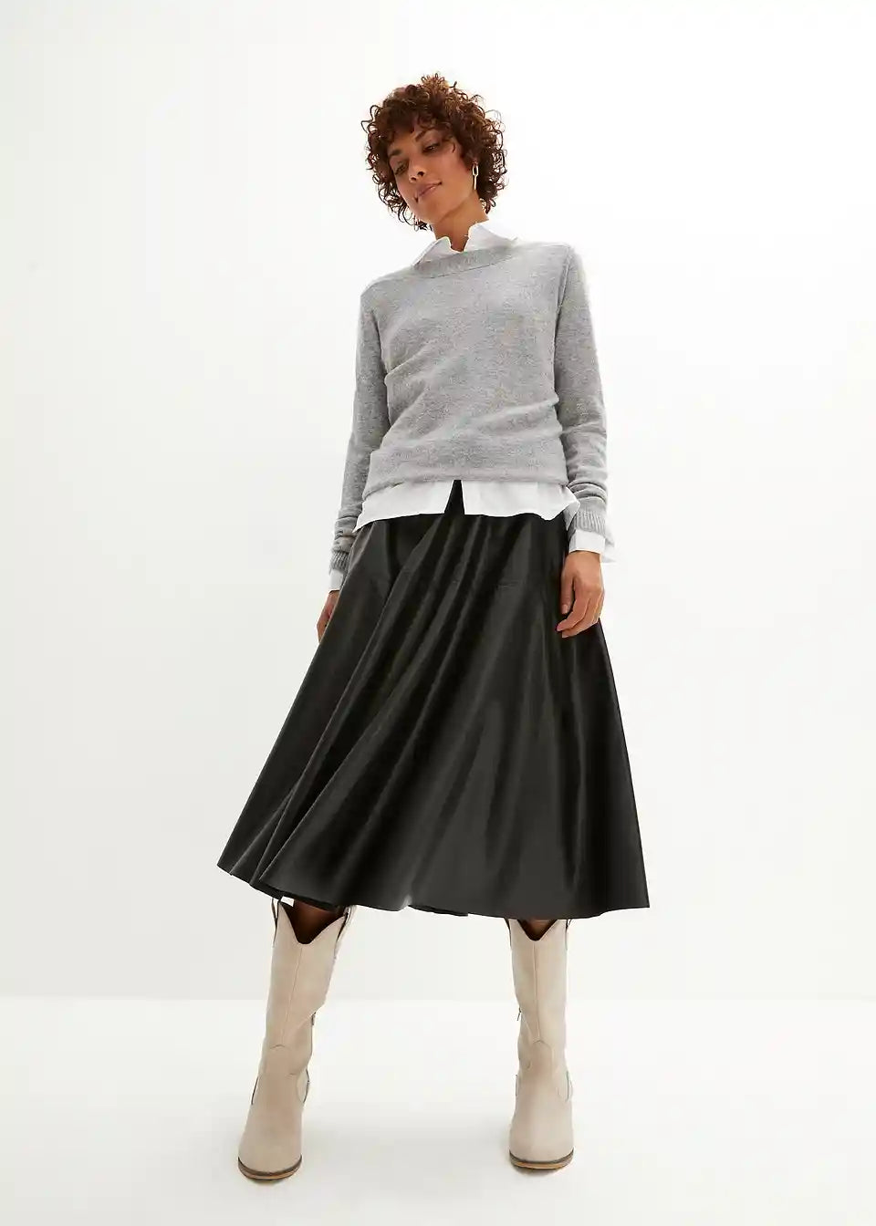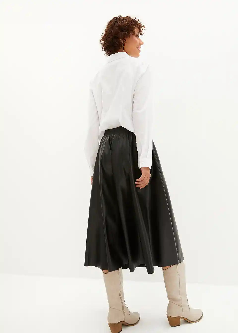 Modischer Lederimitat-Midirock mit elastischem Bund