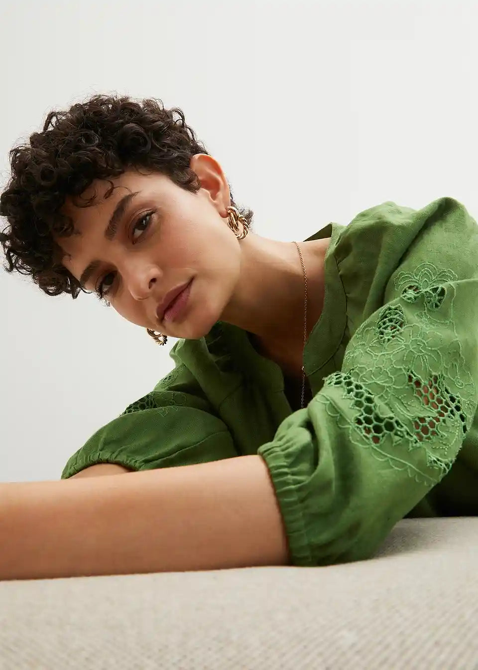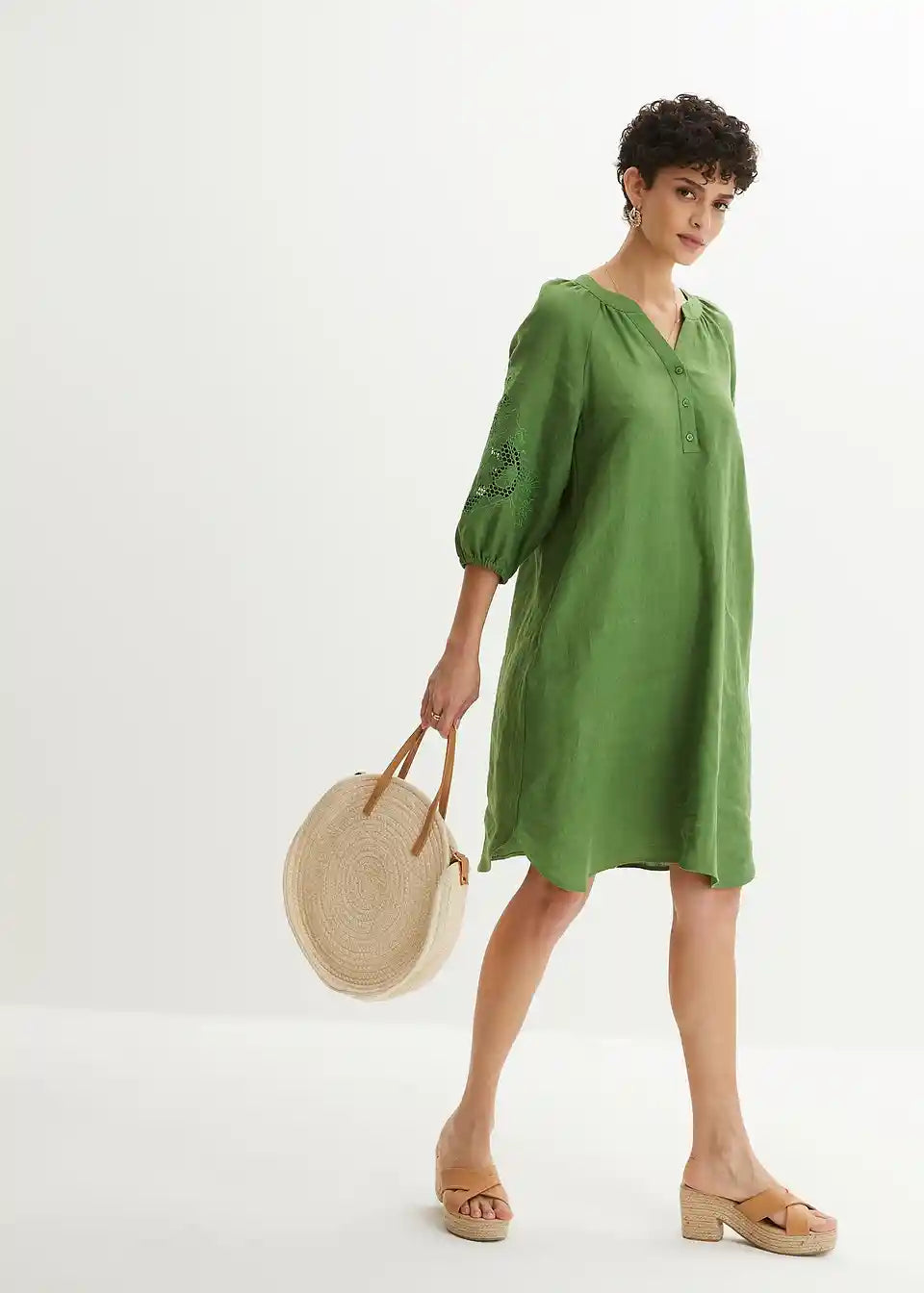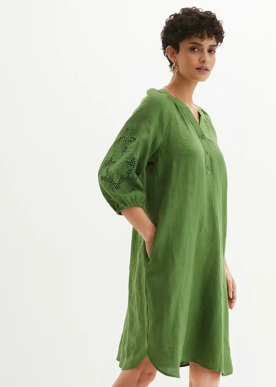 Sommerliches Leinen-Kleid mit Lochstickerei am Arm