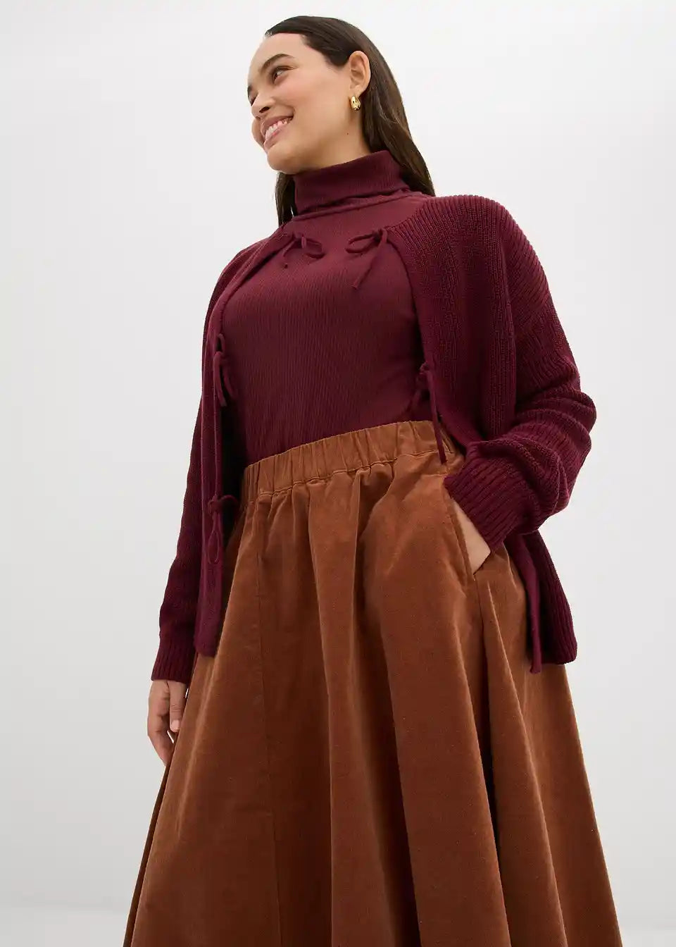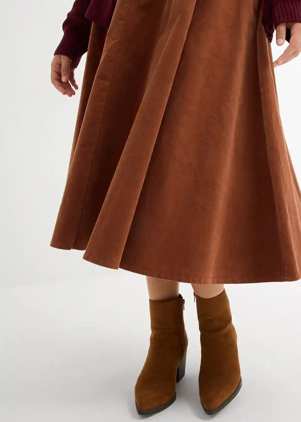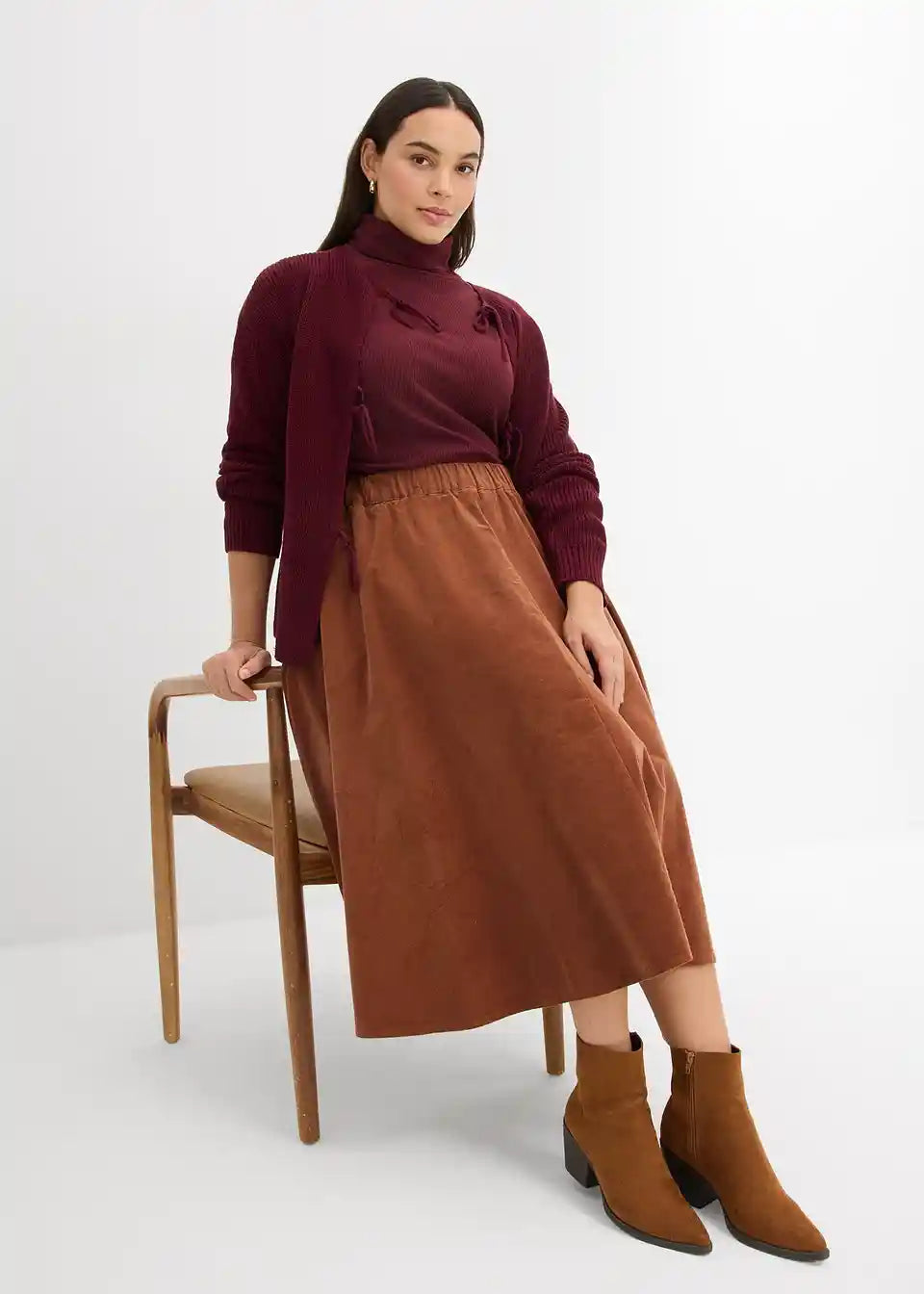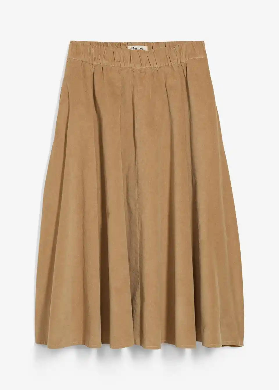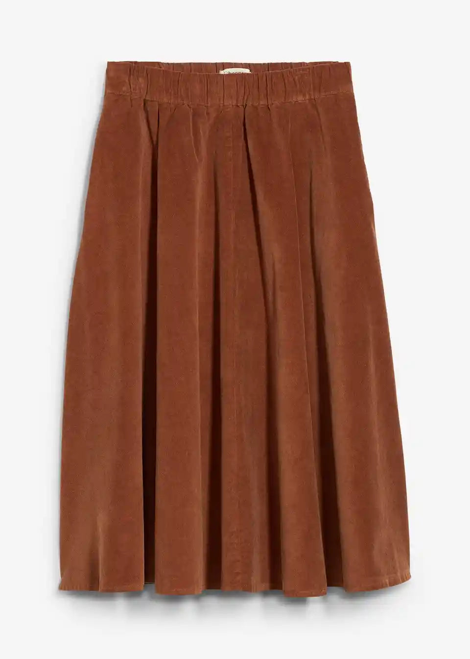 Cordrock mit elastischem Bund und seitlichen Eingriffstaschen.