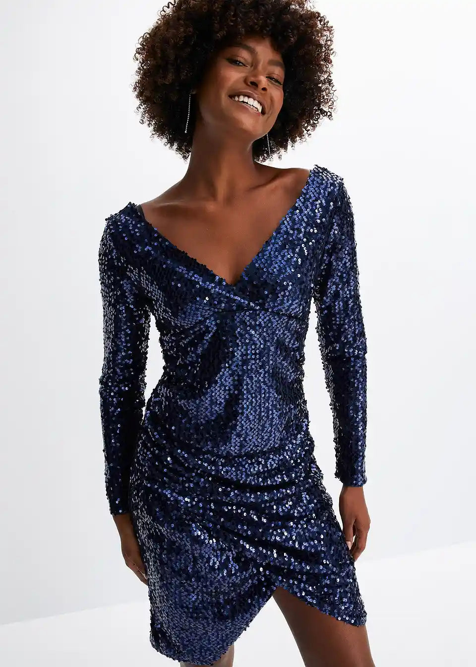 Modern und feminin: Partykleid mit Pailletten und Raffungen