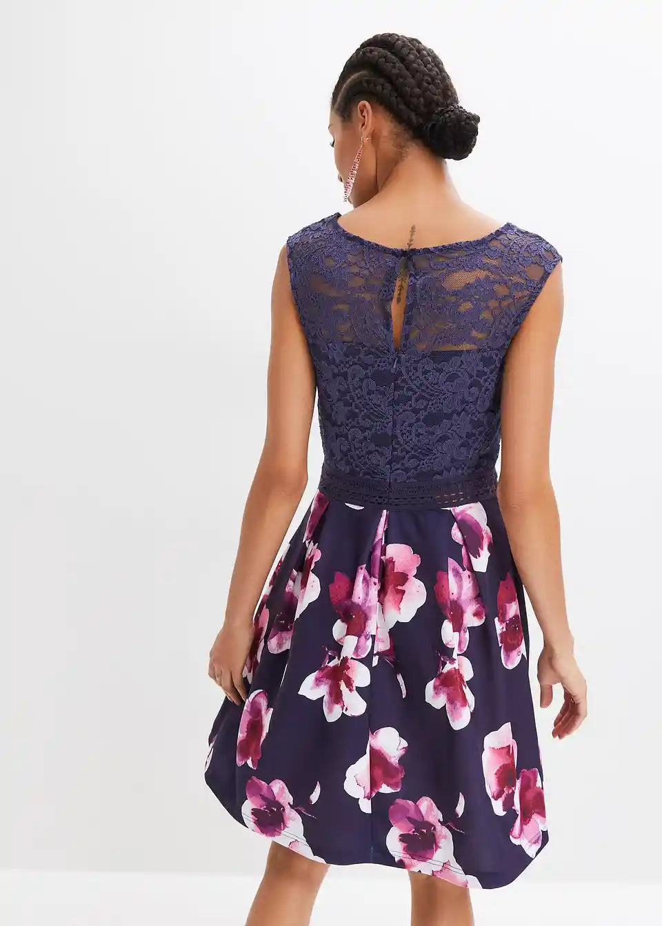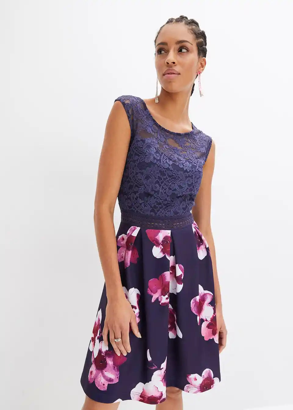 Romantisch und feminin: Minikleid aus fester Scuba-Qualität mit Spitze im Oberteil