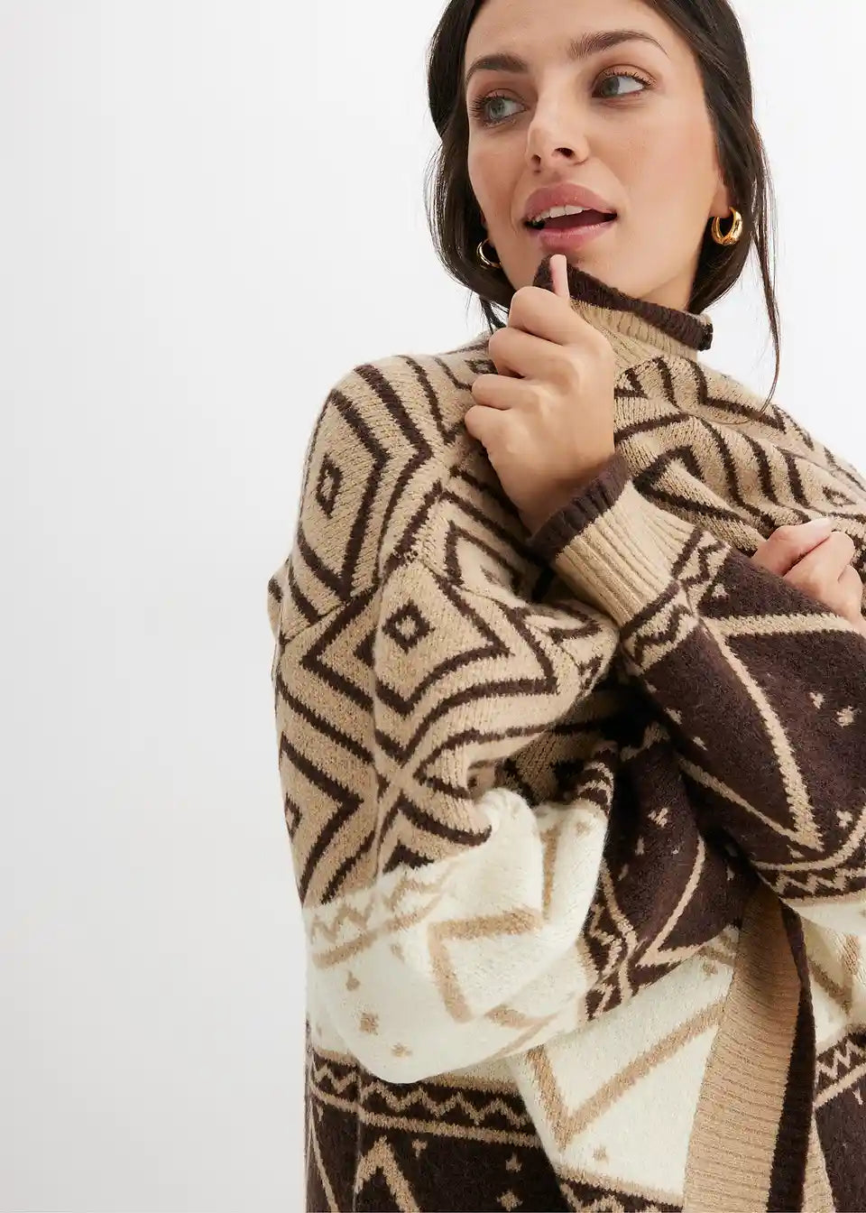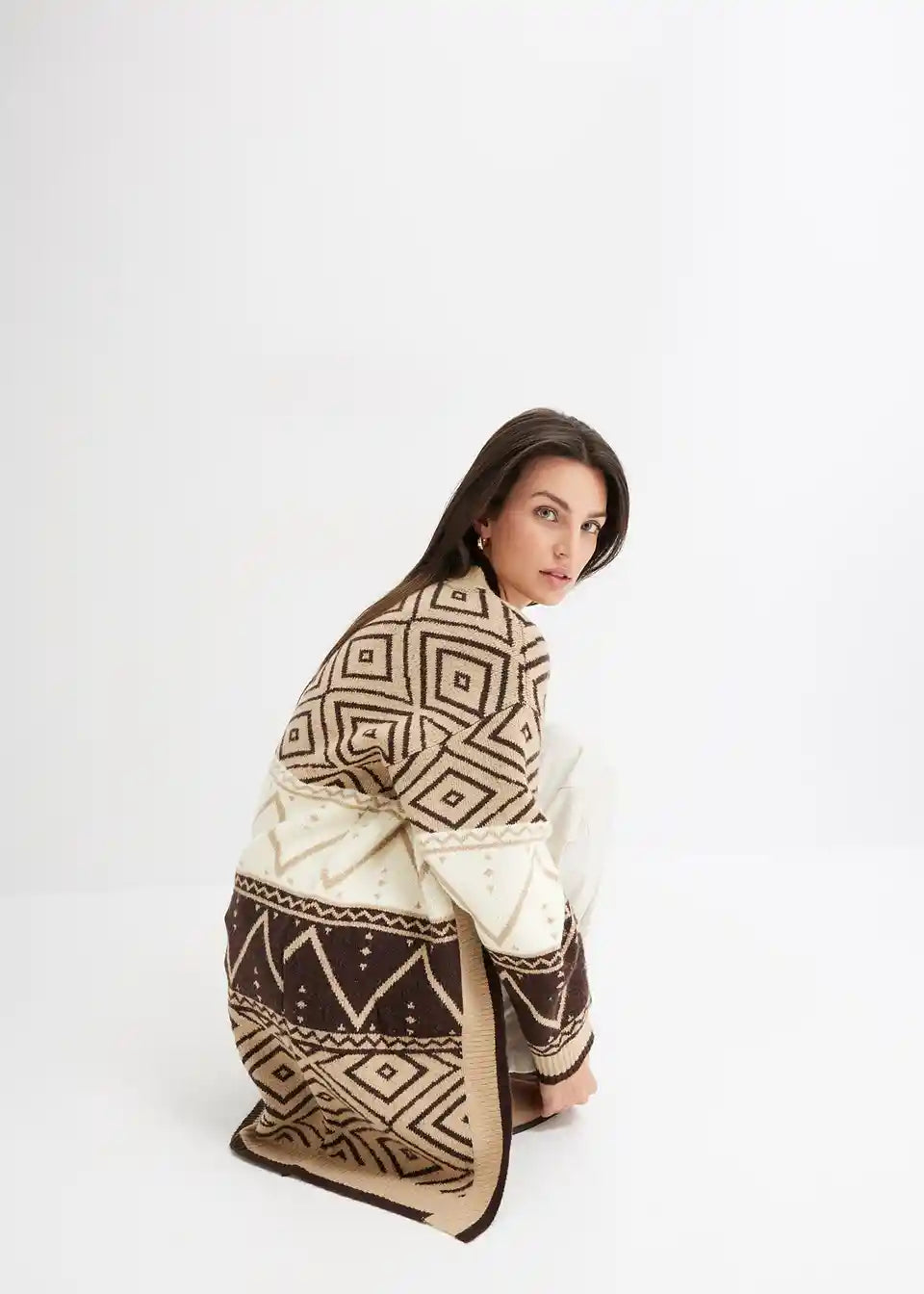 Modern und feminin: Oversized Strickjacke mit grafischem Jacquard-Muster