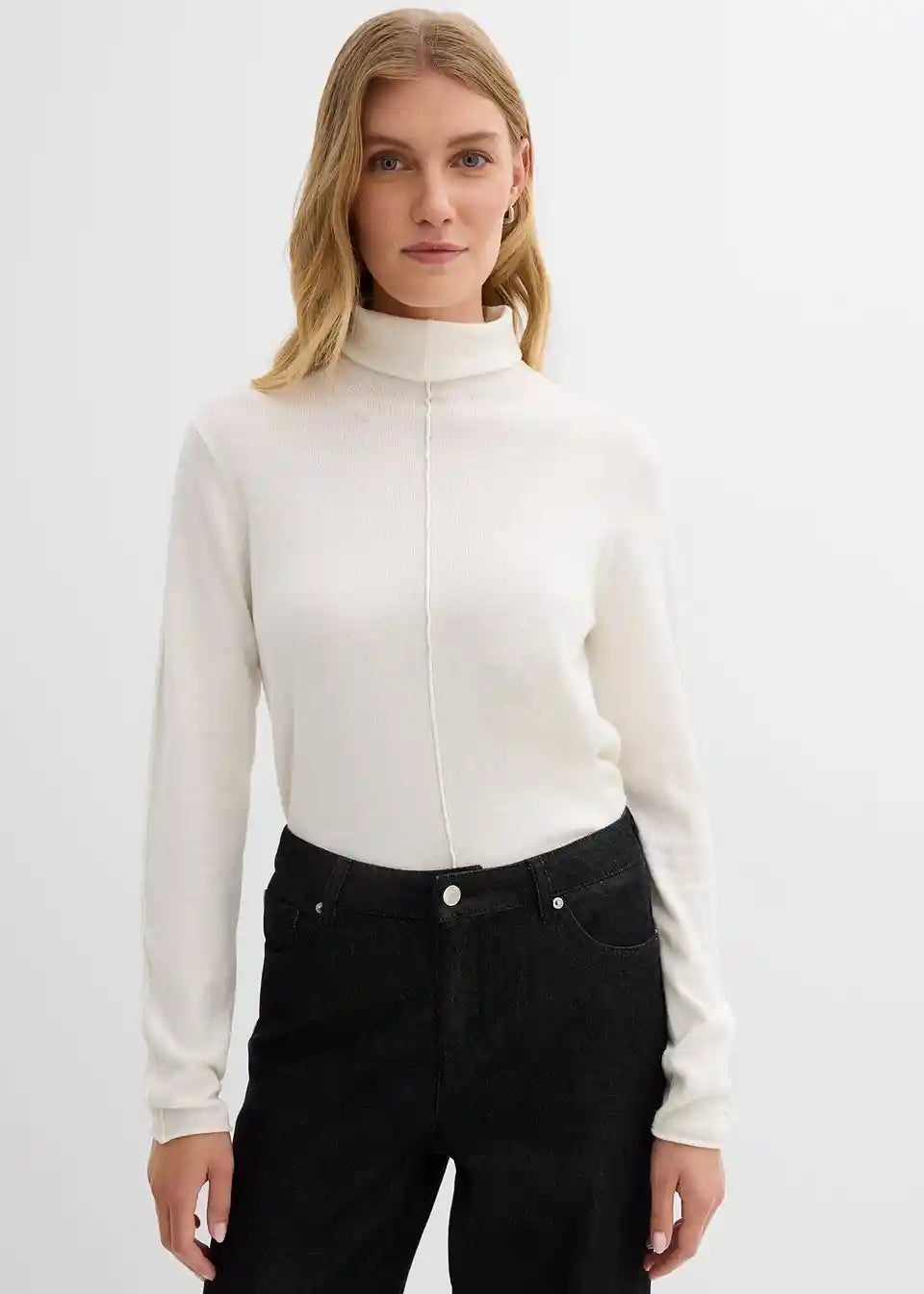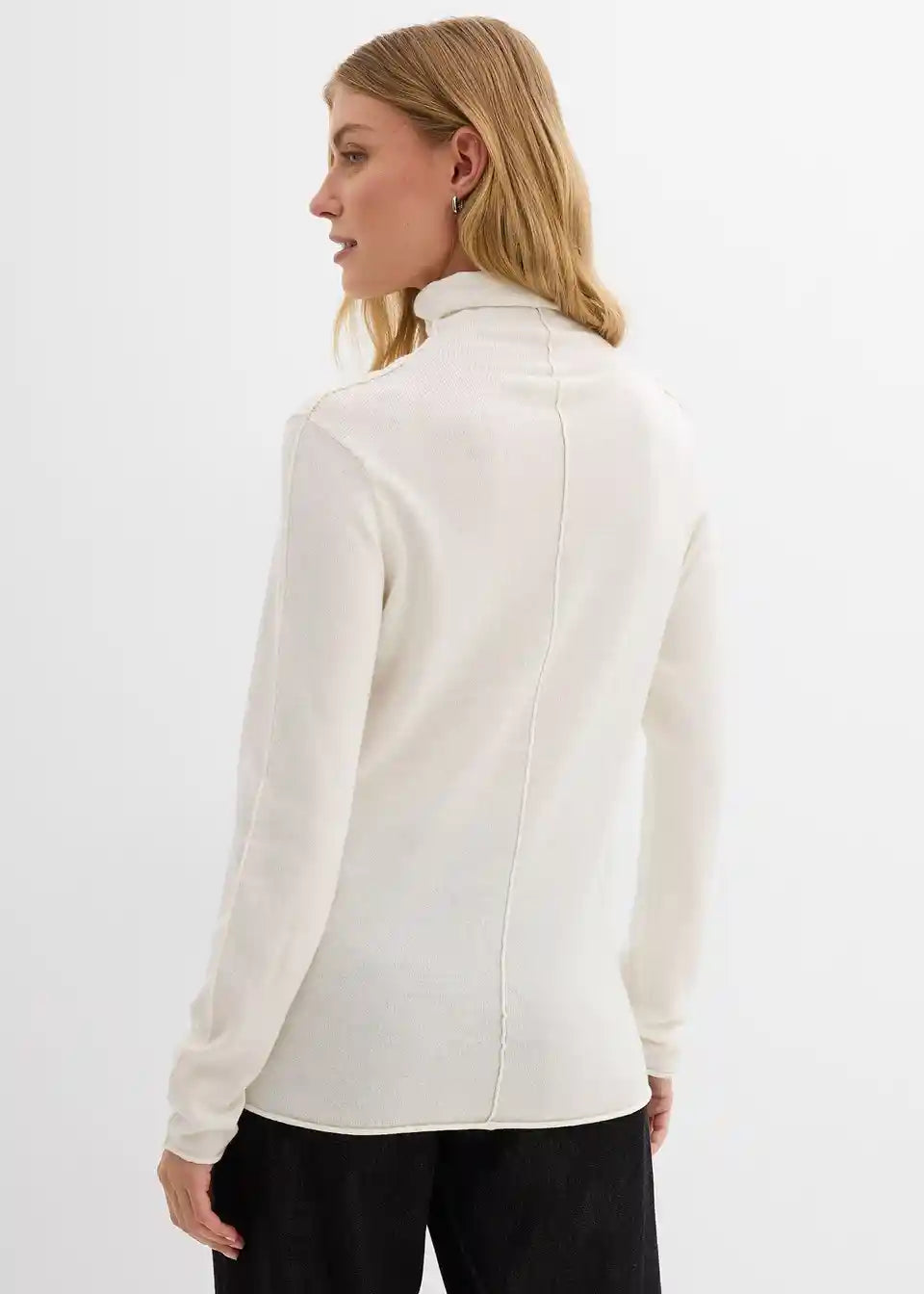 Feinstrickpullover mit Rollkragen und langen Ärmeln aus Baumwoll-Kaschmir-Mix