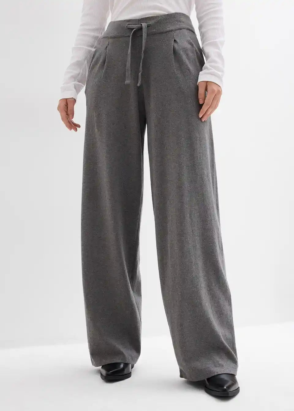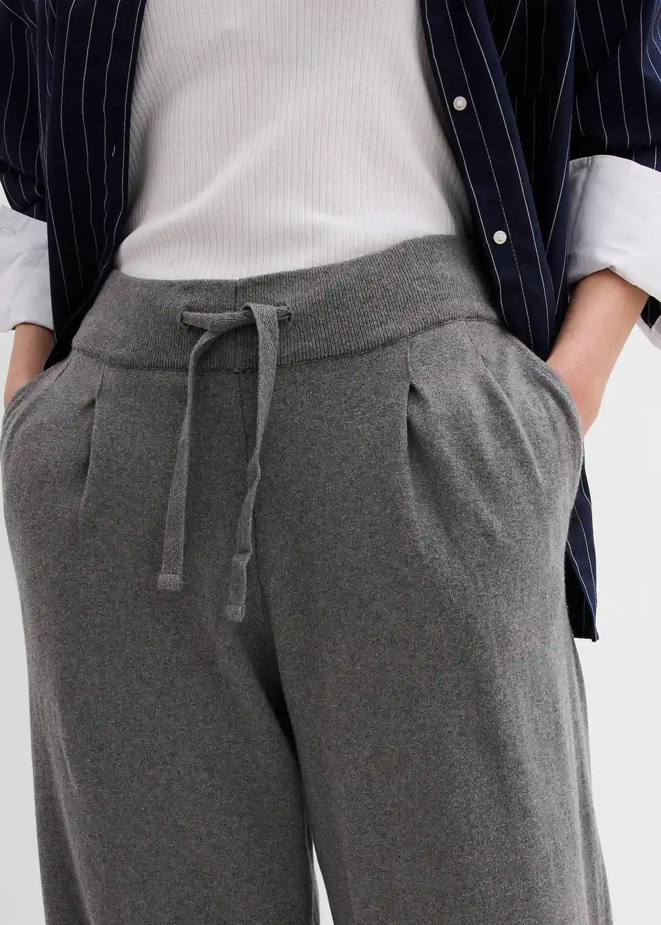Strickhose mit weitem Bein und elastischem verstellbaren Bund mit Bindeband aus Kaschmir-Mix