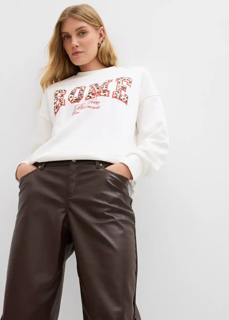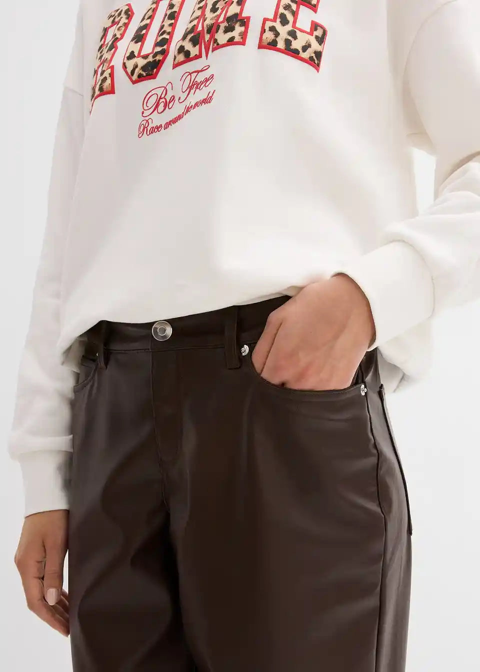 Lässige Lederimitat-Hose in weitem Schnitt