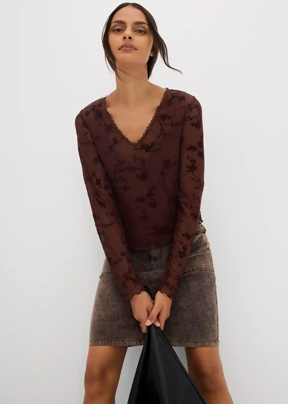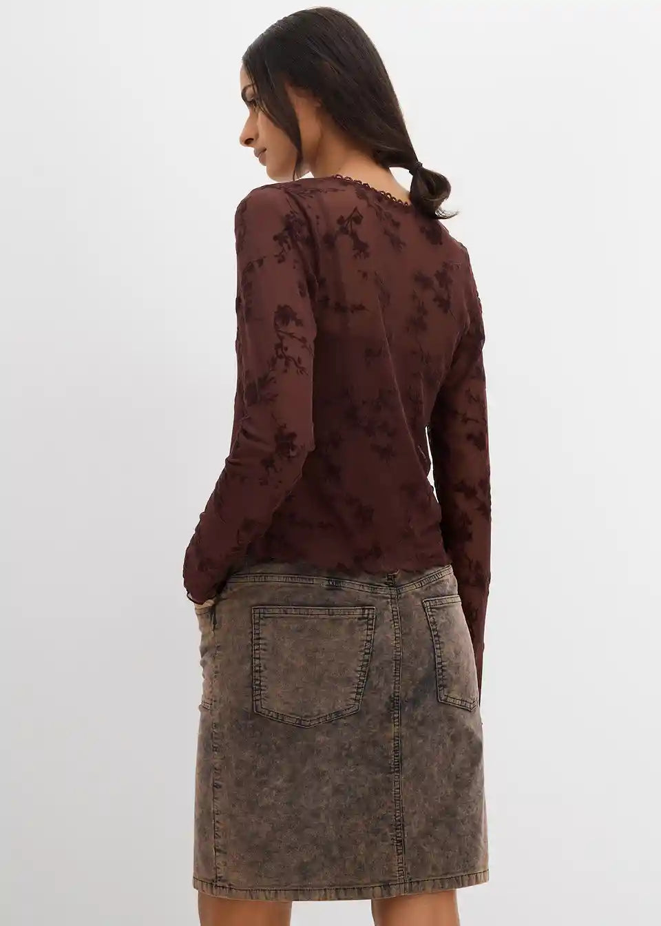 Modisches Langarmshirt mit Flockprint und Spaghettiträger-Top