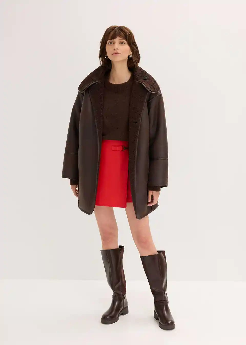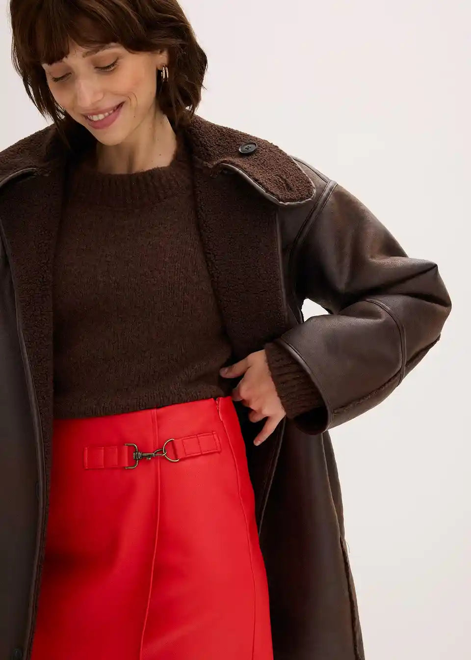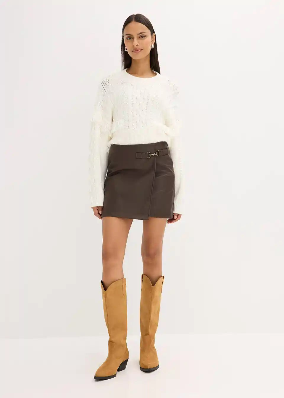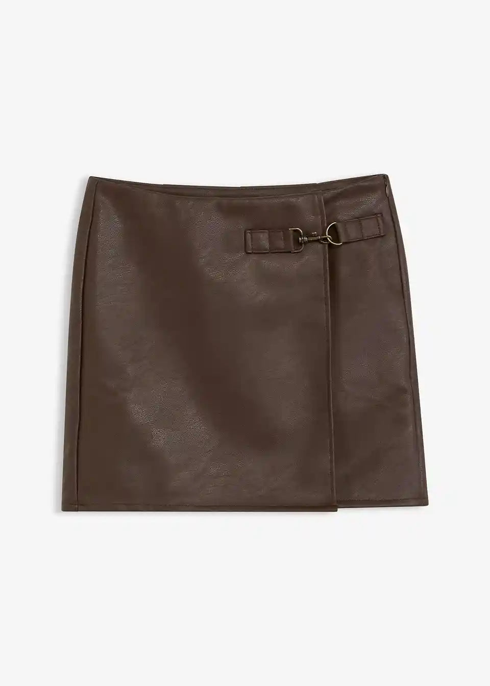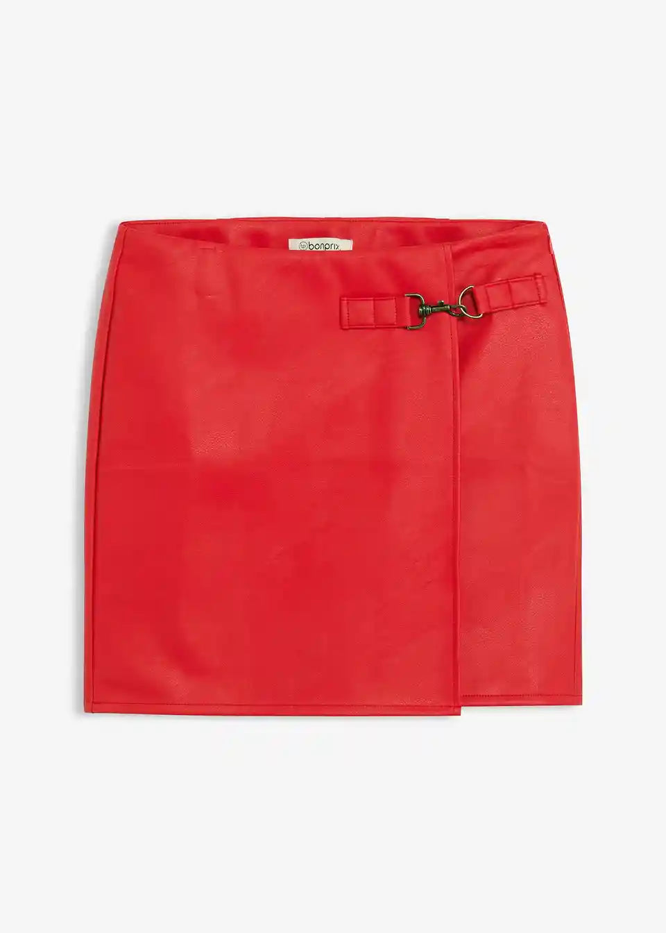 kurzer Lederimitat-Rock mit modischer Schnalle vorne an der Seite