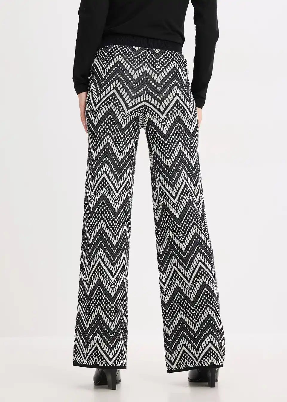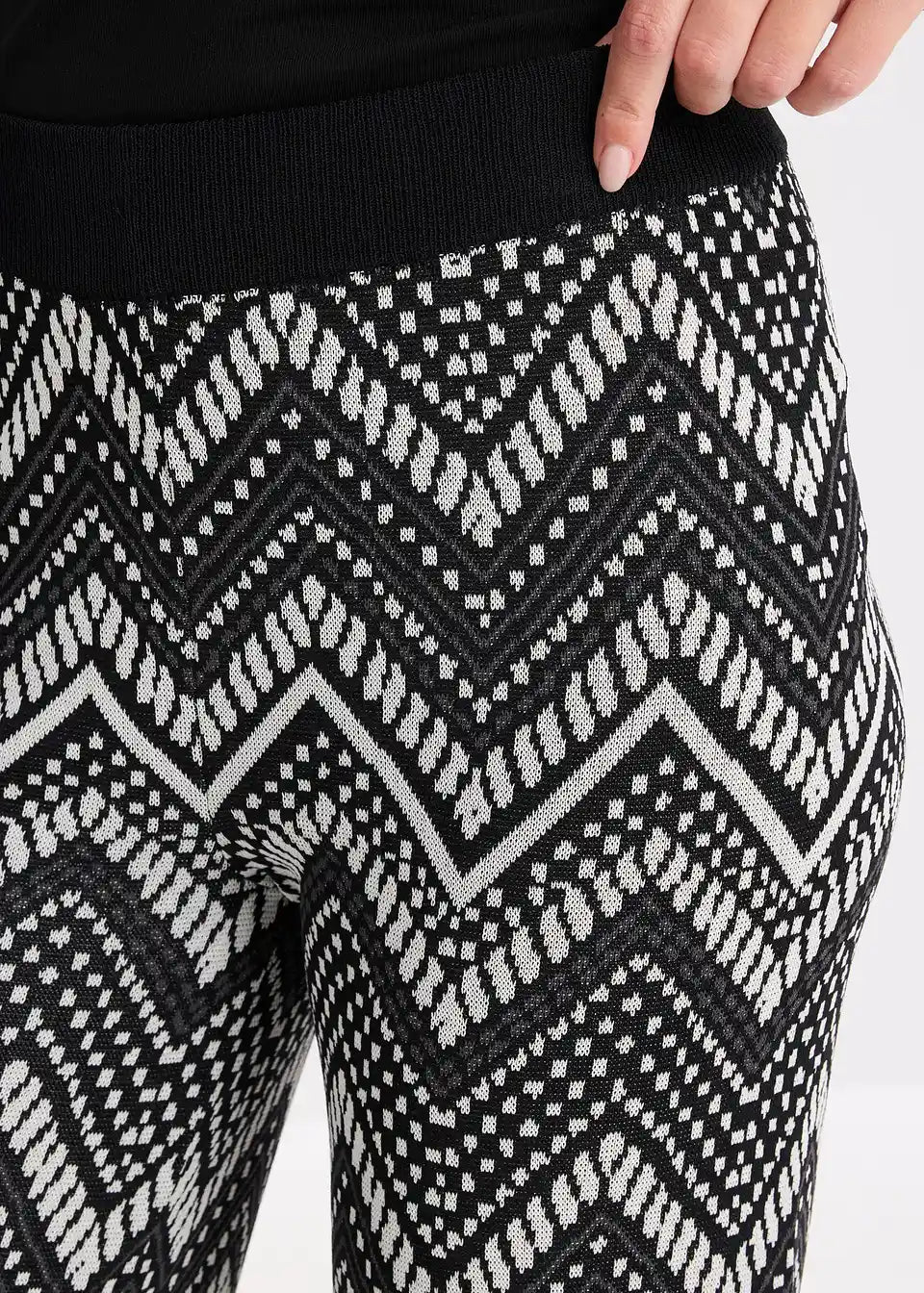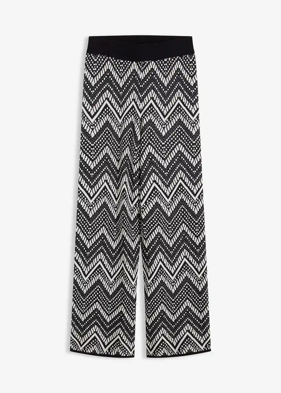 weite Jacquard Strickhose mit Gummibund und modischem Muster