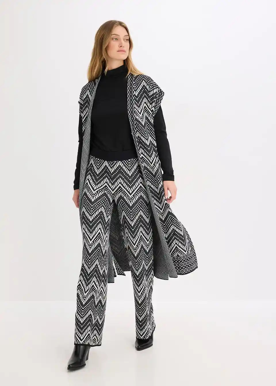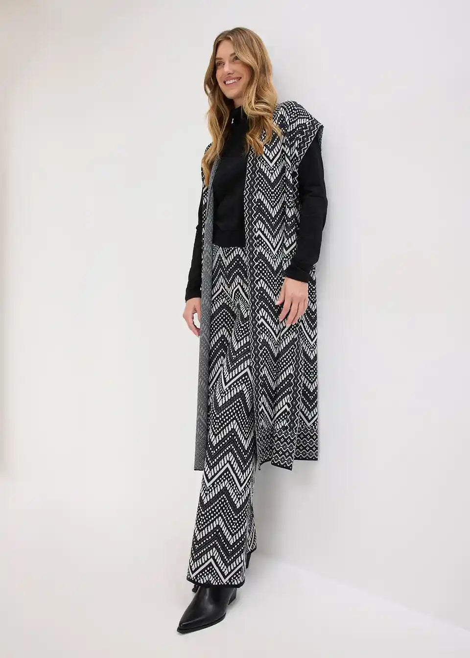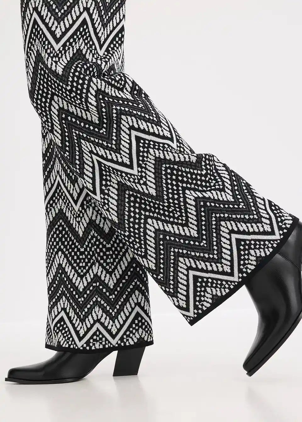 weite Jacquard Strickhose mit Gummibund und modischem Muster